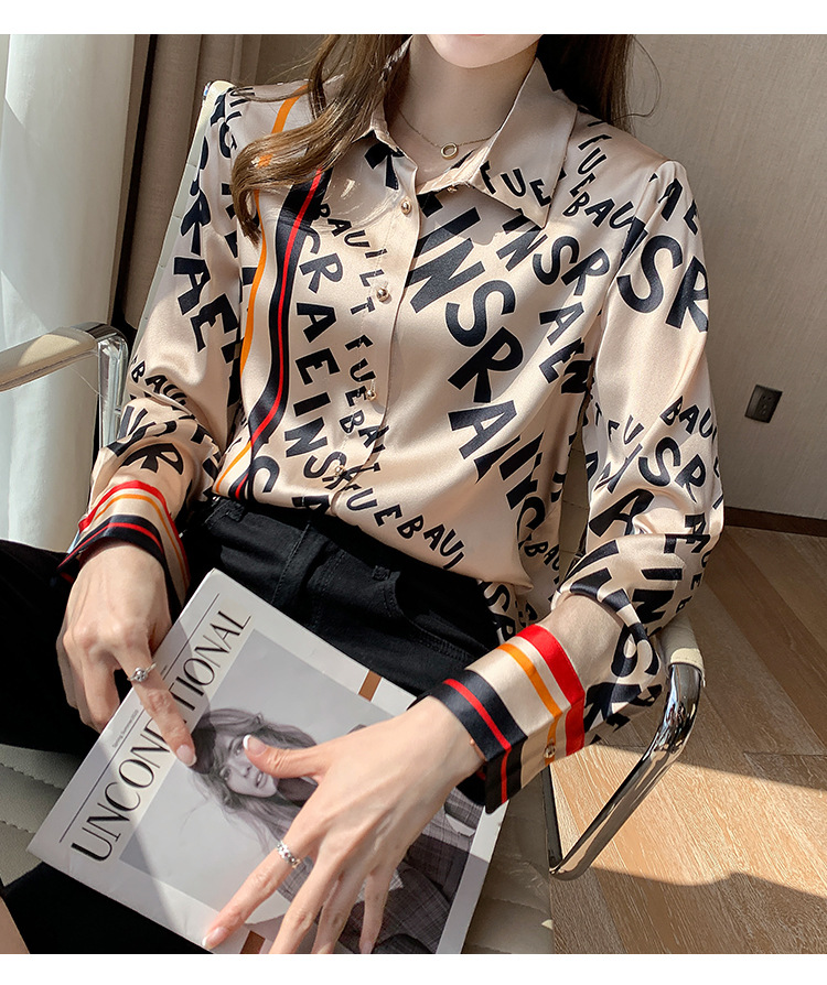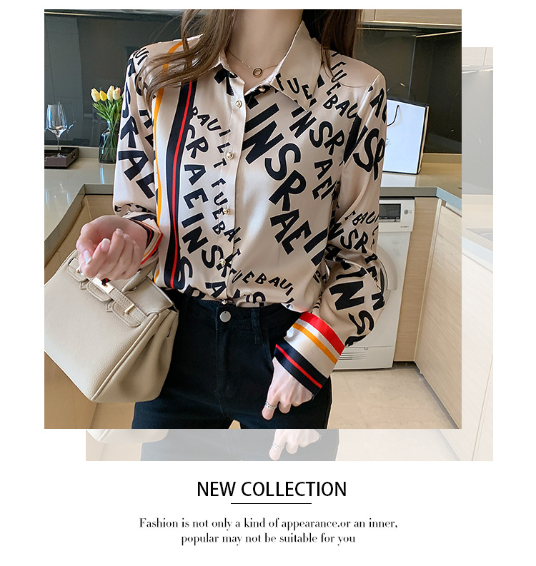 패션 레터 프린트 셔츠 2022 봄 여름 AliExpress 아마존 긴 소매 라펠 캐주얼 탑