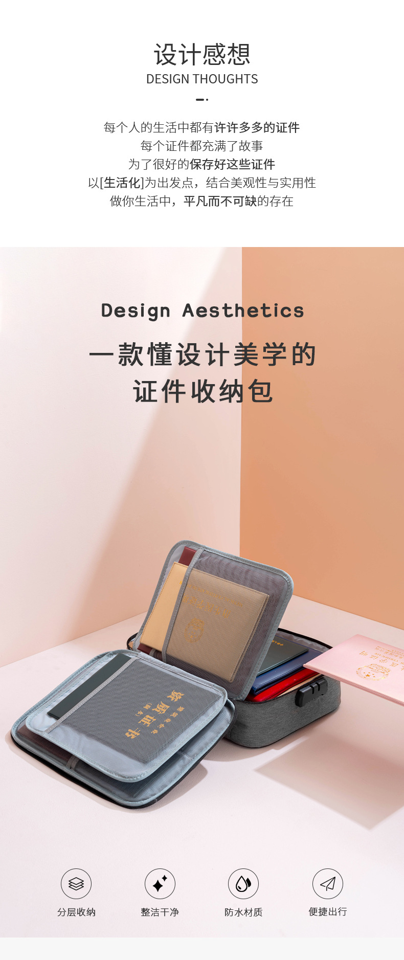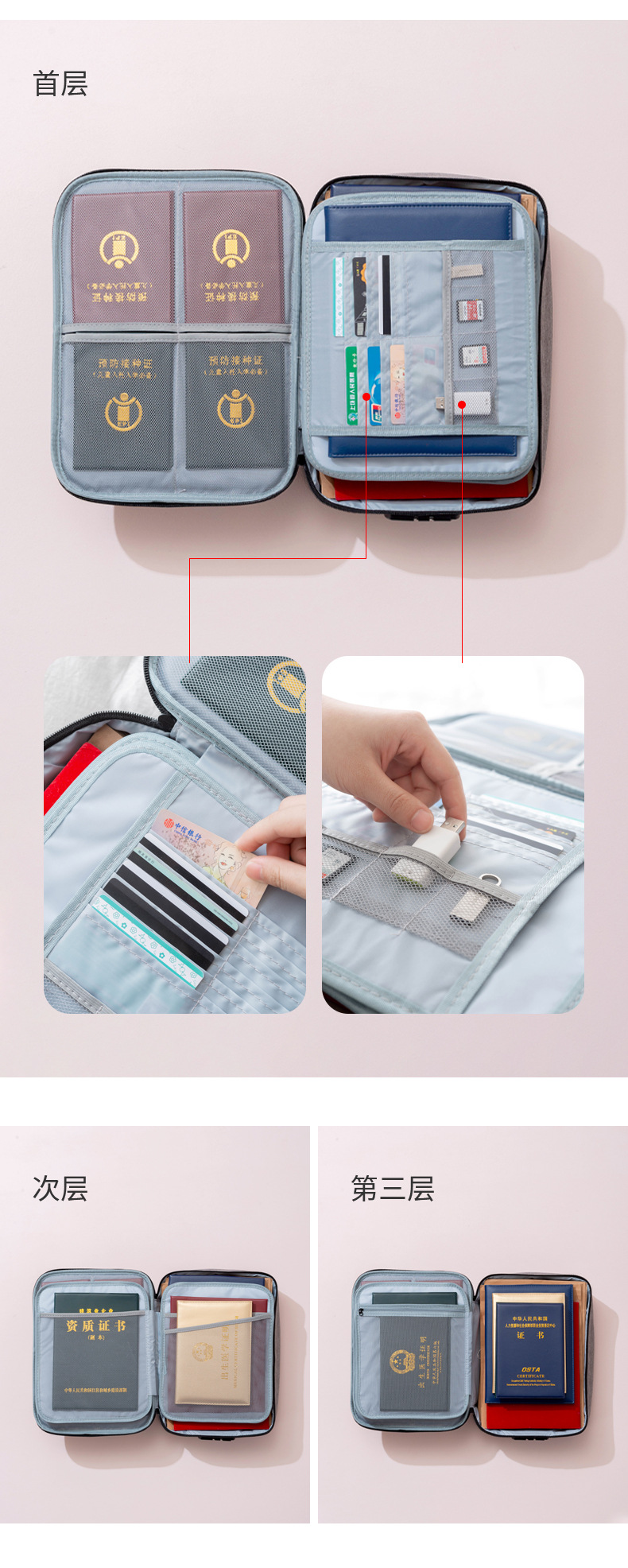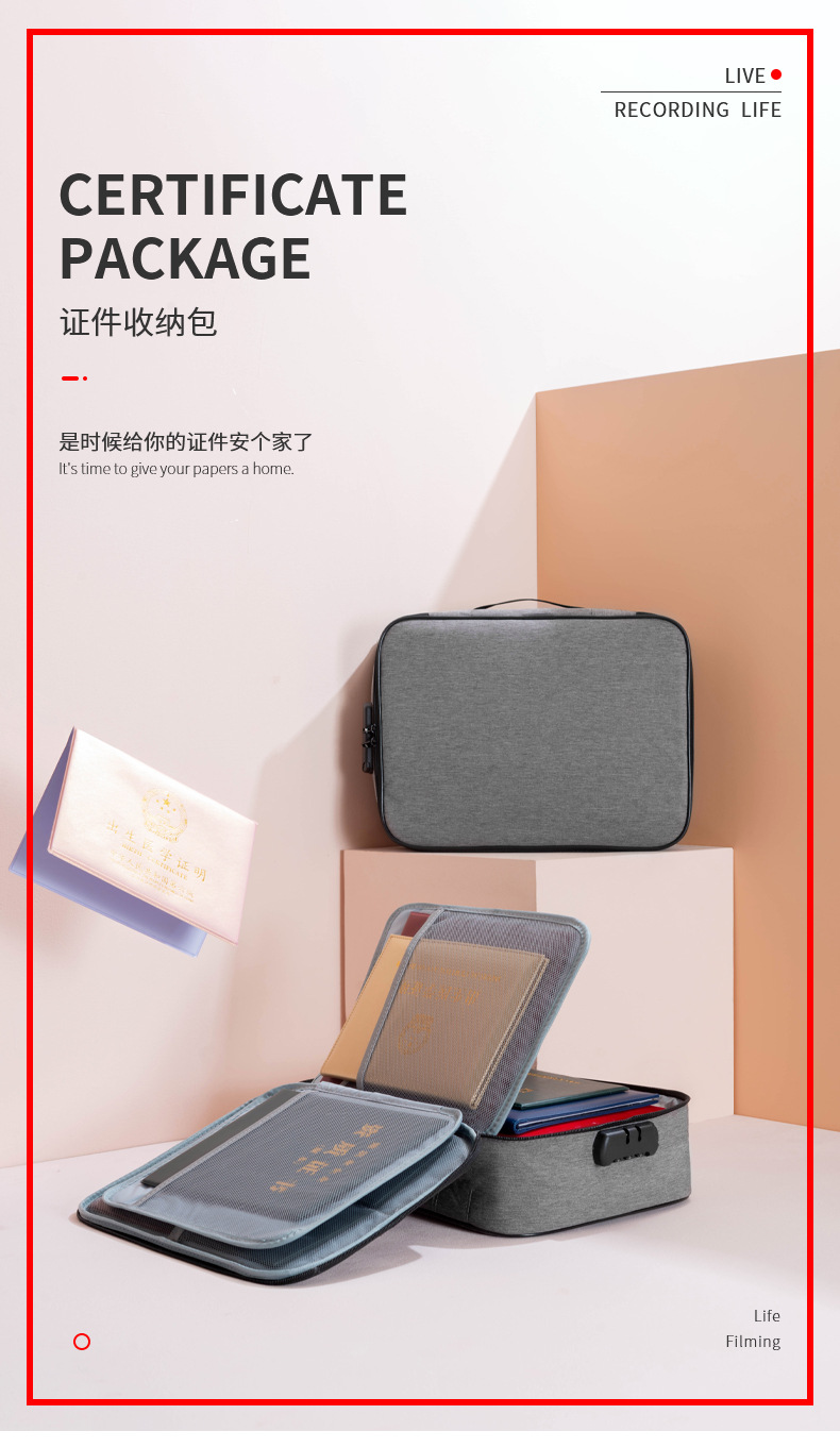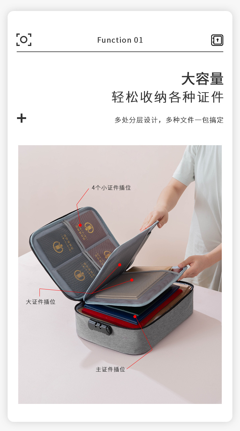 증명서 보관 가방 여행 가정용 다층 대용량 파일 가방 휴대용 잠금 보관 가방 공장스토어 가기