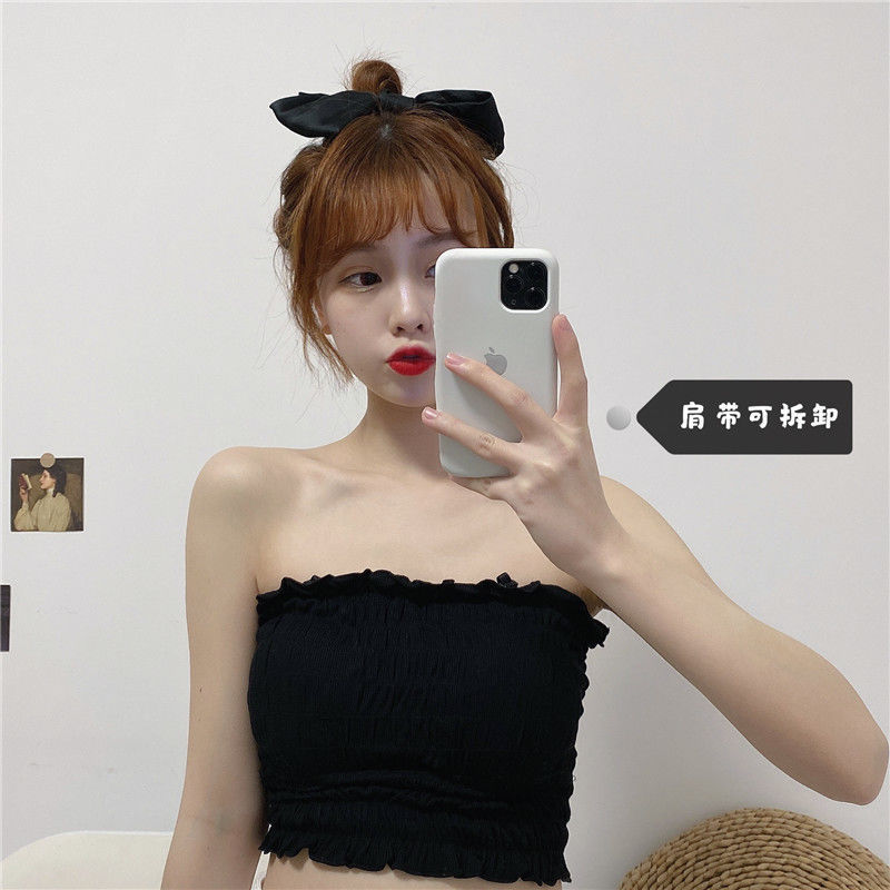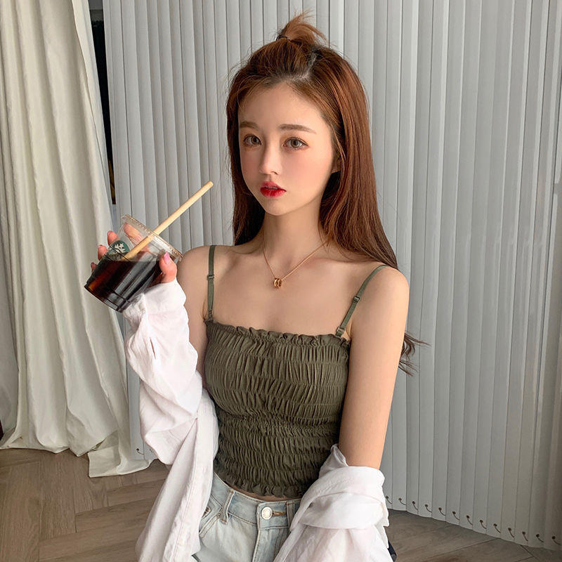 새로운 스타일 시드니 아이스 실크 주름 겉옷 셔츠 나무 귀 탑 포장 가슴 슬링 조끼 가슴 패드 여성용 긴 속옷스토어 가기