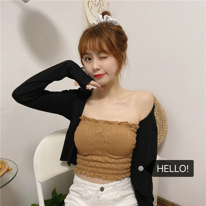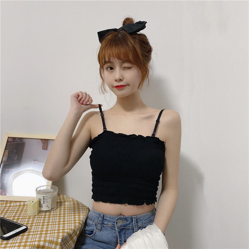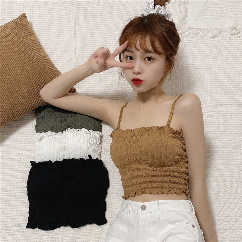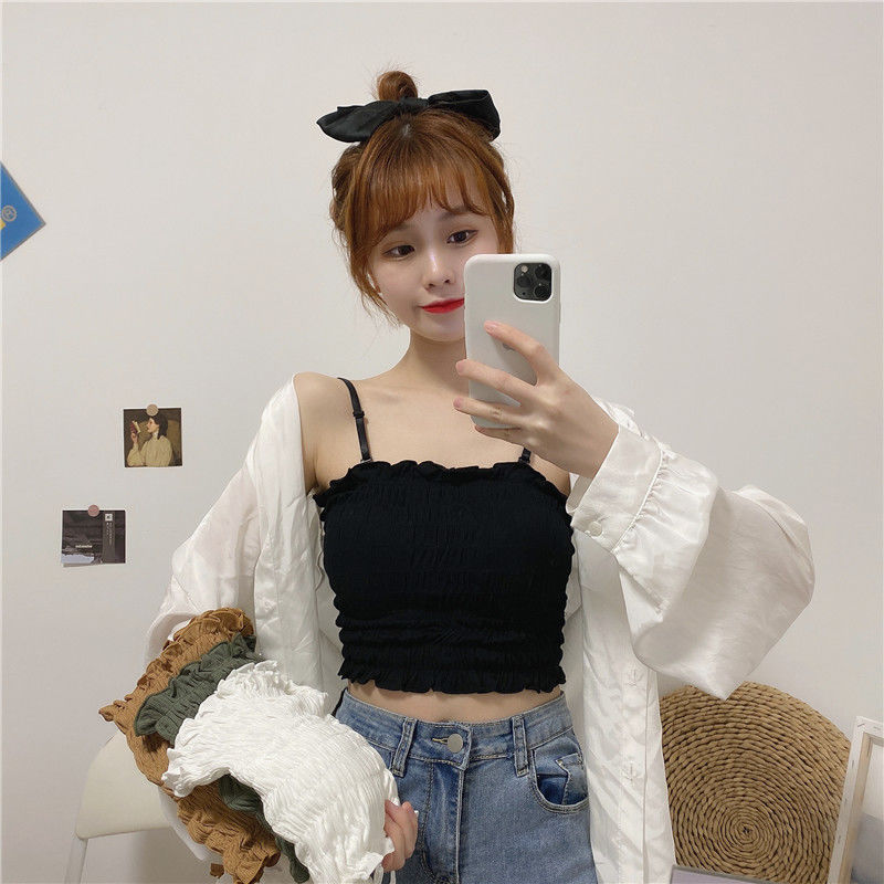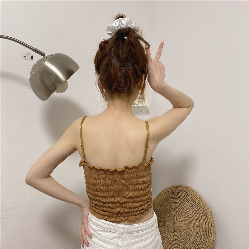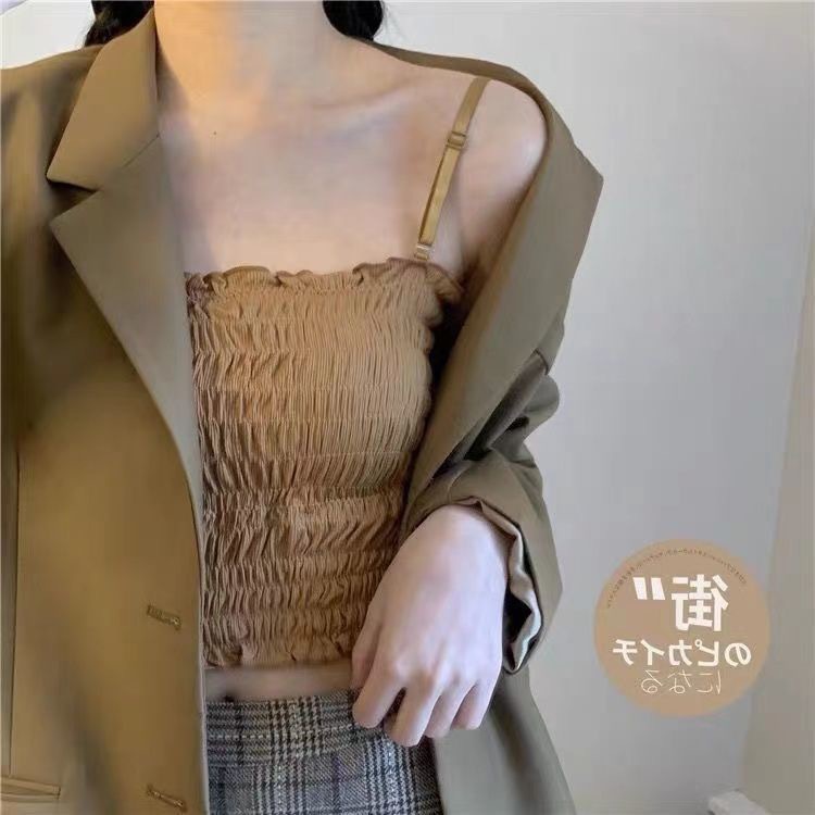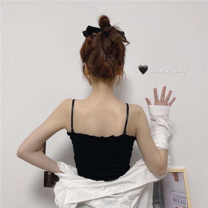 새로운 스타일 시드니 아이스 실크 주름 겉옷 셔츠 나무 귀 탑 포장 가슴 슬링 조끼 가슴 패드 여성용 긴 속옷