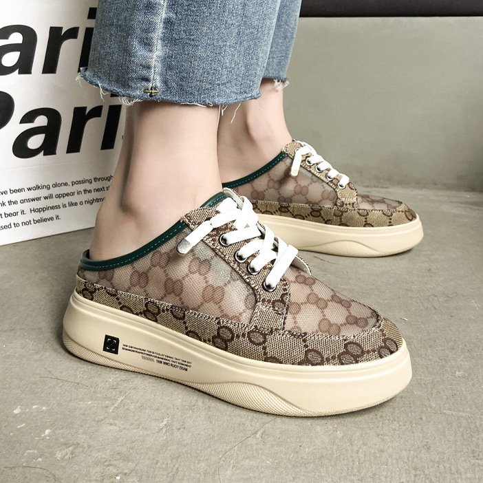 2025년 여름 신상품 반슬리퍼, 키높이 두꺼운 밑창 샌들, 슬립온, 여성용 소형 사이즈 31 32 33, 메쉬 소재스토어 가기