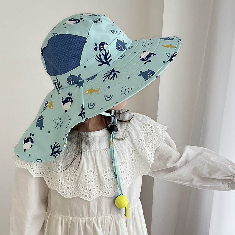 여름 어린이 모자 태양 모자 야외 안티 자외선 목 보호 남성 귀여운 여성 어부 모자 새로운 통기성 태양 보호