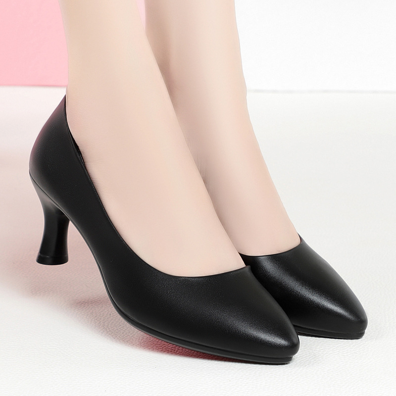 스튜어디스 작업 가죽 신발 작은 뾰족한 부드러운 가죽 편안한 싱글 레이어 신발 2024 봄 여성 비즈니스 착용 통기성 얕은 여성 신발스토어 가기