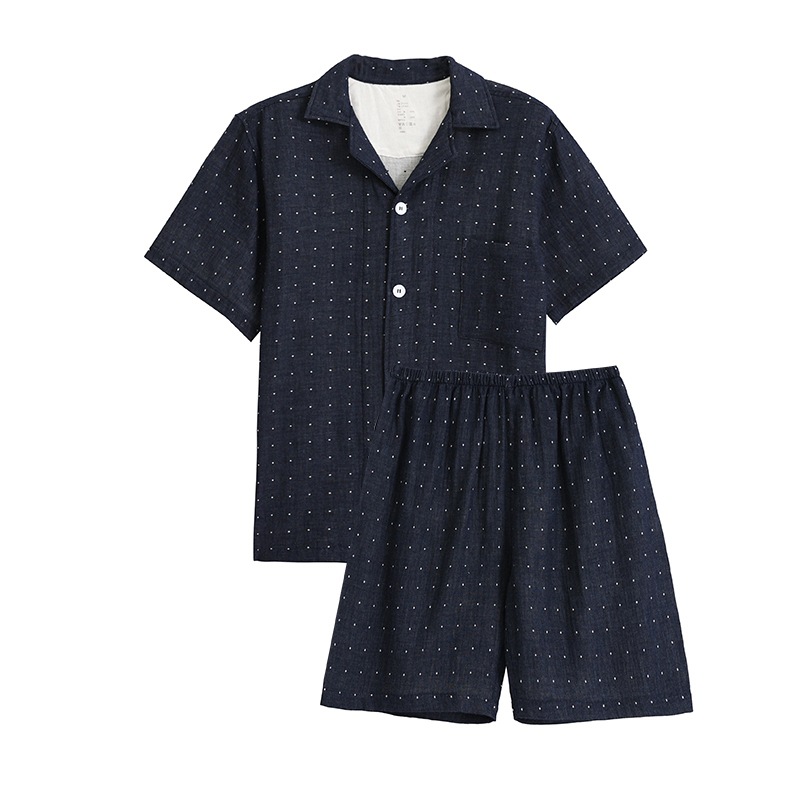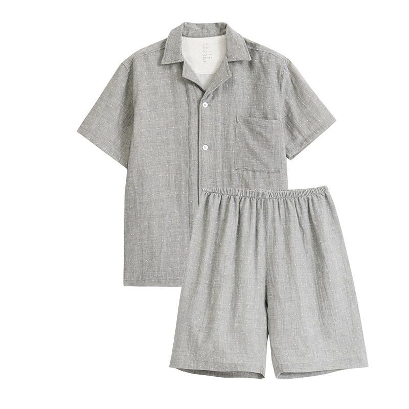 일본식 무인양품 순면 더블 레이어 원사 잠옷 여성용 순면 반팔 잠옷 여름 순면 반팔 가정복스토어 가기