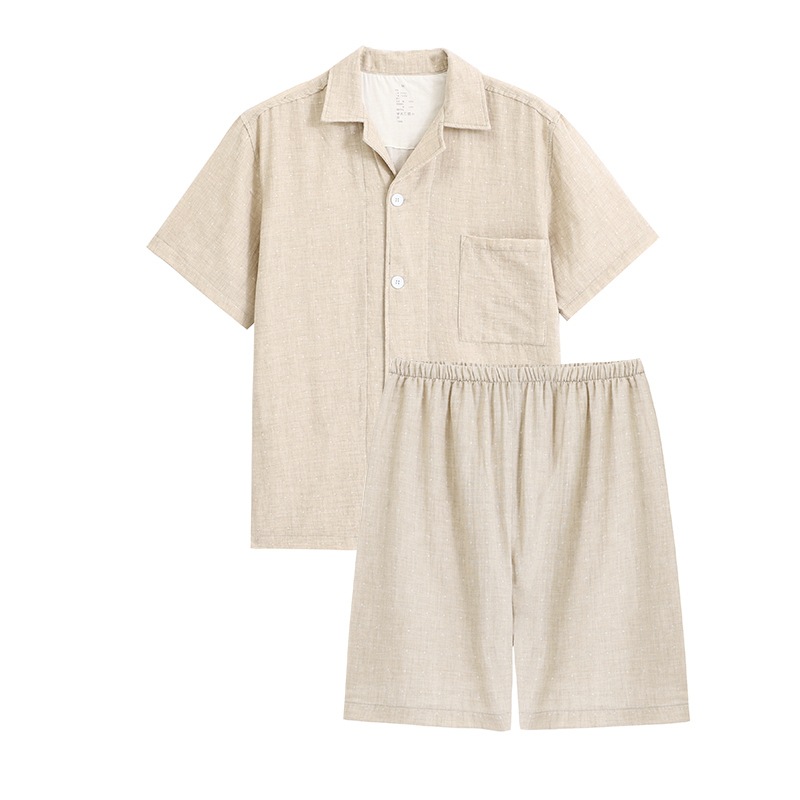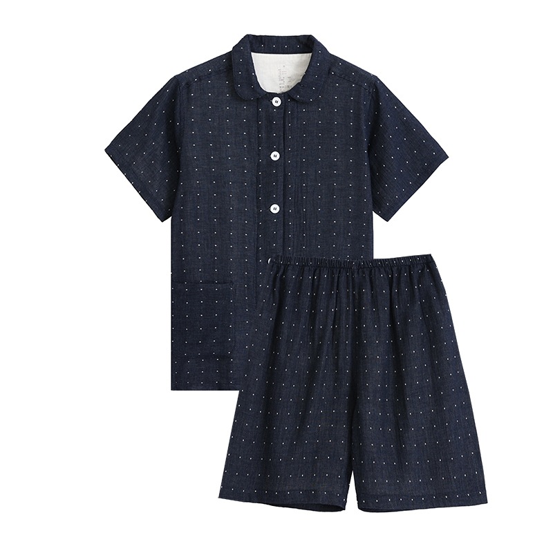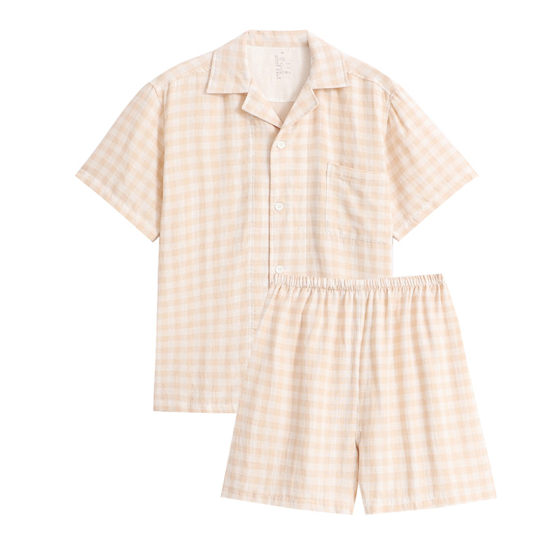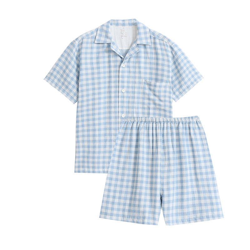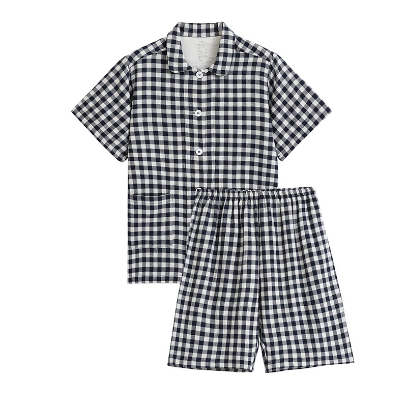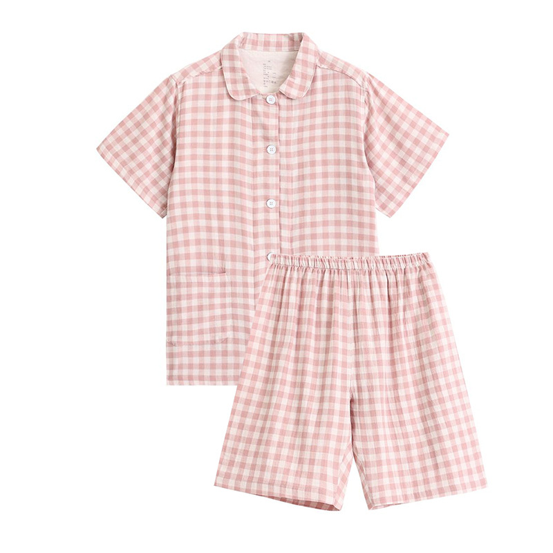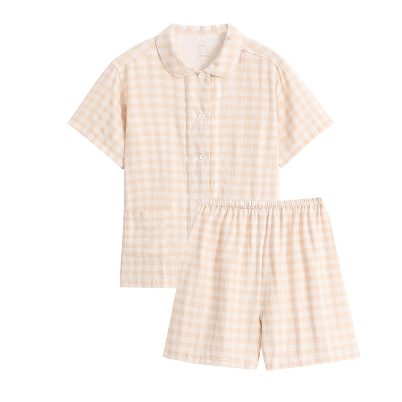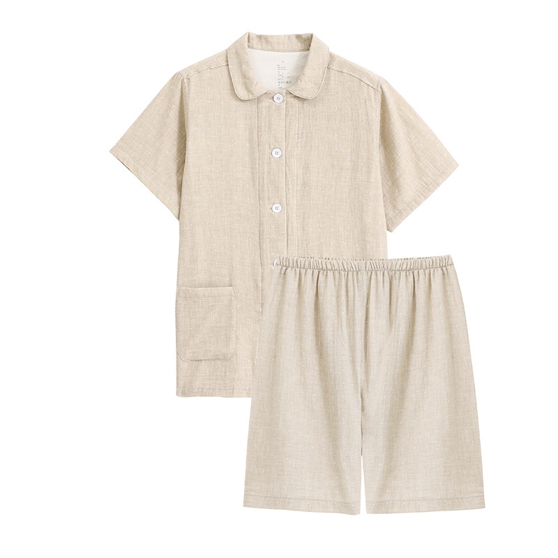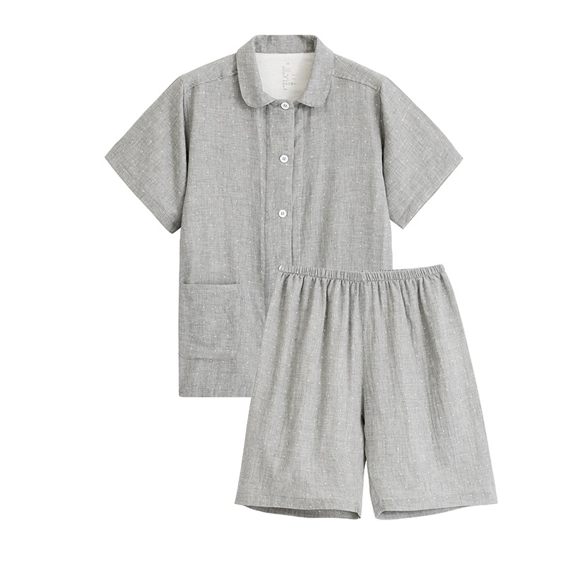 일본식 무인양품 순면 더블 레이어 원사 잠옷 여성용 순면 반팔 잠옷 여름 순면 반팔 가정복