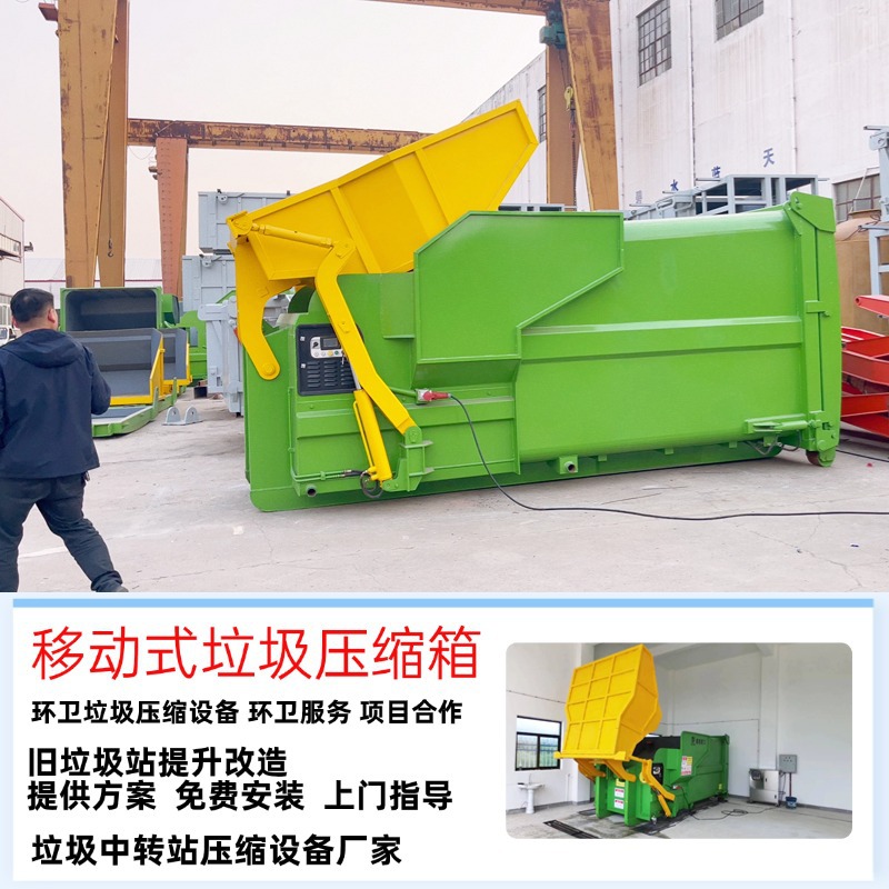 菜市场压缩式垃圾箱 联体式中转站压缩装置 移动式垃圾压缩站