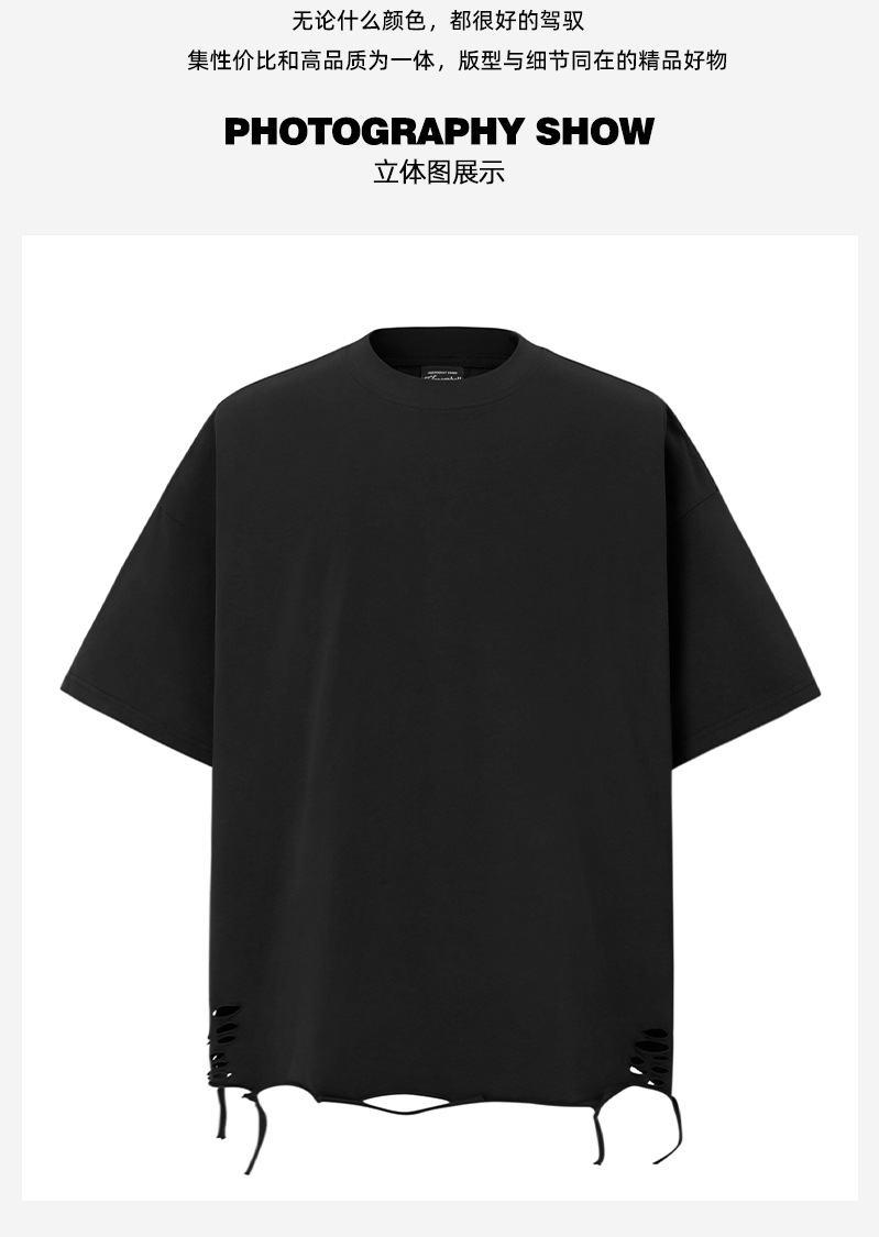 250g 헤비 타이드 브랜드 하이 스트리트 스택 짧은 소매 티셔츠 남성용 코튼 남성용 루즈베이스 셔츠 여름 남성복
