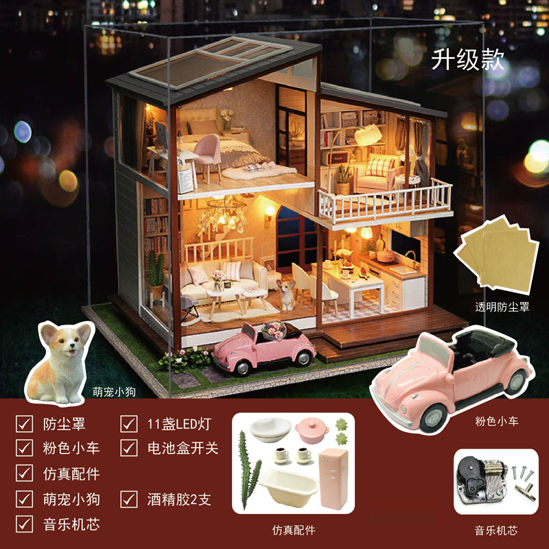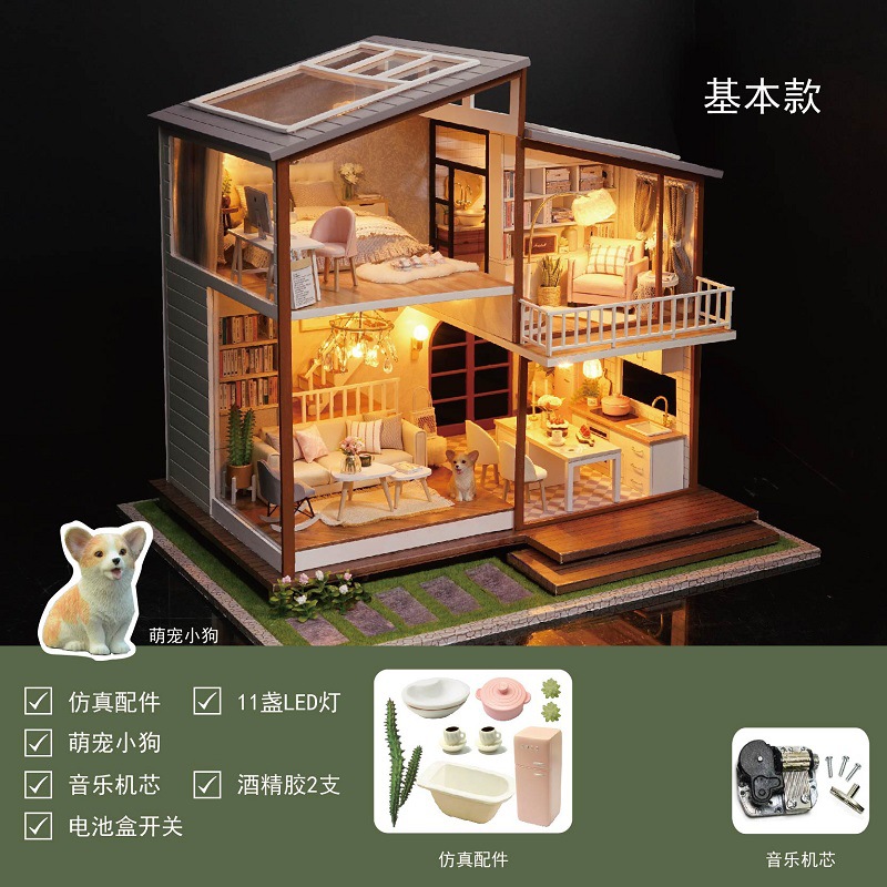 Zhiqu 하우스 어린이 장난감 수제 DIY 오두막 조립 대형 빌라 슬로우 타임 모델 성인 생일 선물