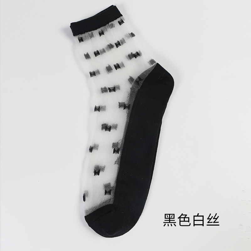 봄과 여름 양말 여성의 새로운 패션 작은 활 유리 실크 양말 숙녀 캐주얼 양말 크리스탈 양말 제조 업체 도매스토어 가기