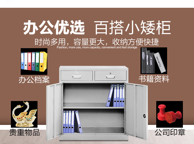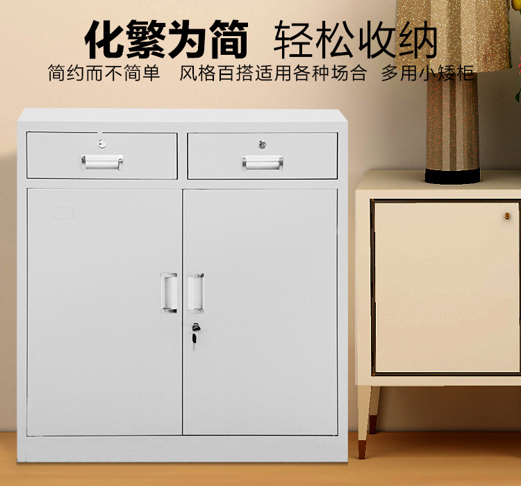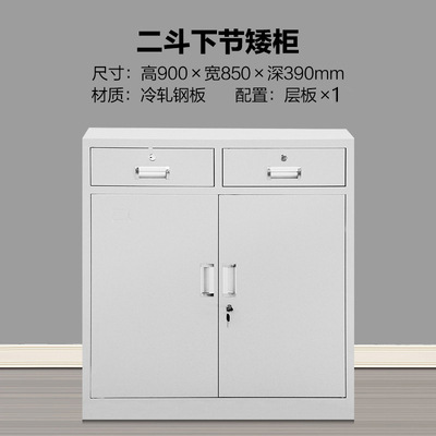 厂家加厚钢制矮柜落地储物柜 二斗下节对开门办公室抽屉铁皮柜子
