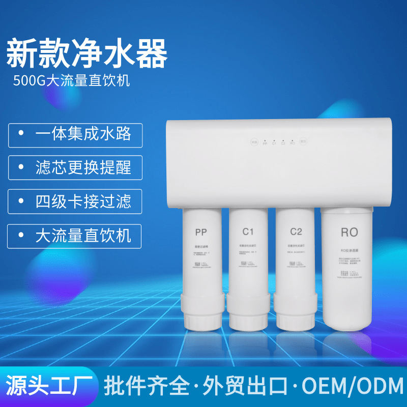 RO反渗透膜采用原装GE膜片,通量大、脱盐滤高、抗污染、整机采用节水设计,净废水比例可达1:1;