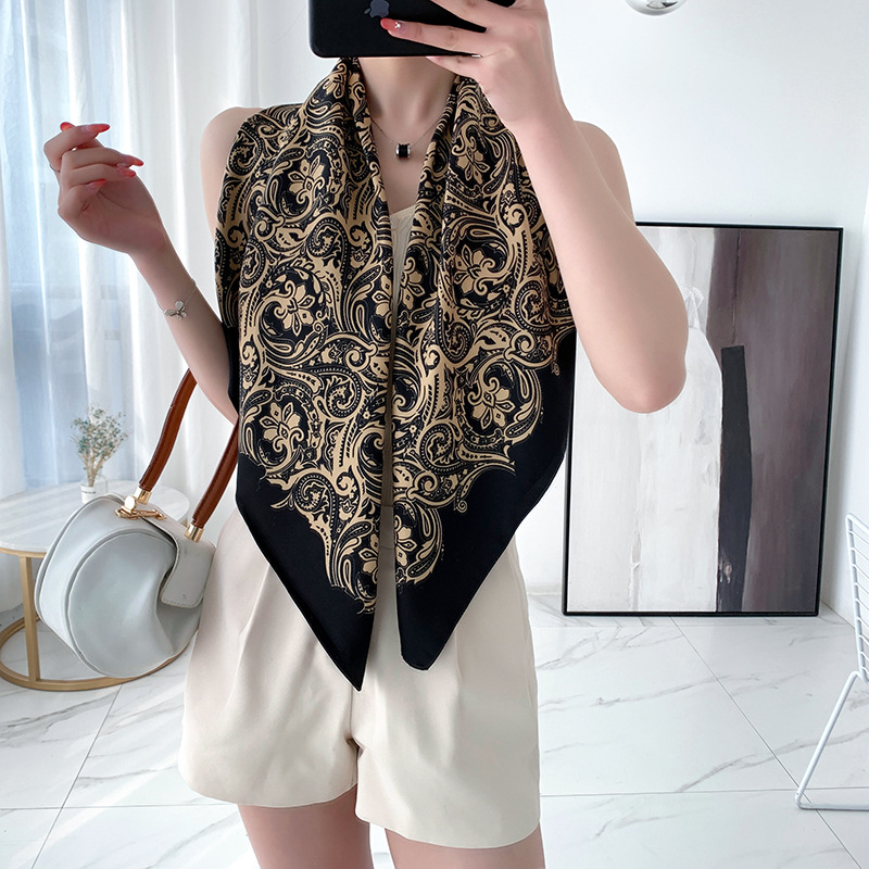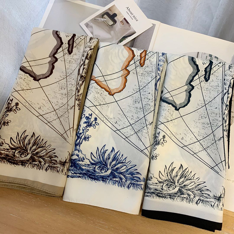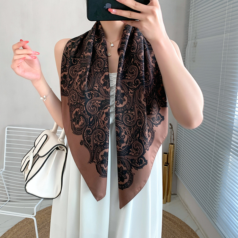 트윌 실크 스카프 신상 프렌치 타이다이 실크 스카프 레트로 여성 패션 스카프 90cm 프린트 도매
