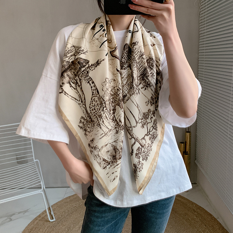 트윌 실크 스카프 신상 프렌치 타이다이 실크 스카프 레트로 여성 패션 스카프 90cm 프린트 도매스토어 가기