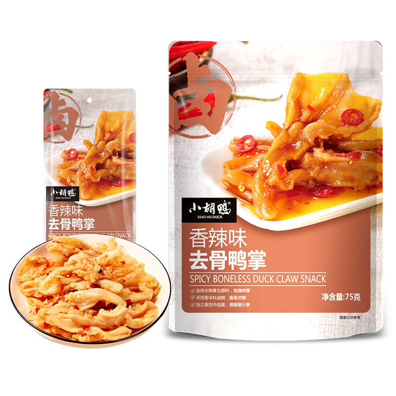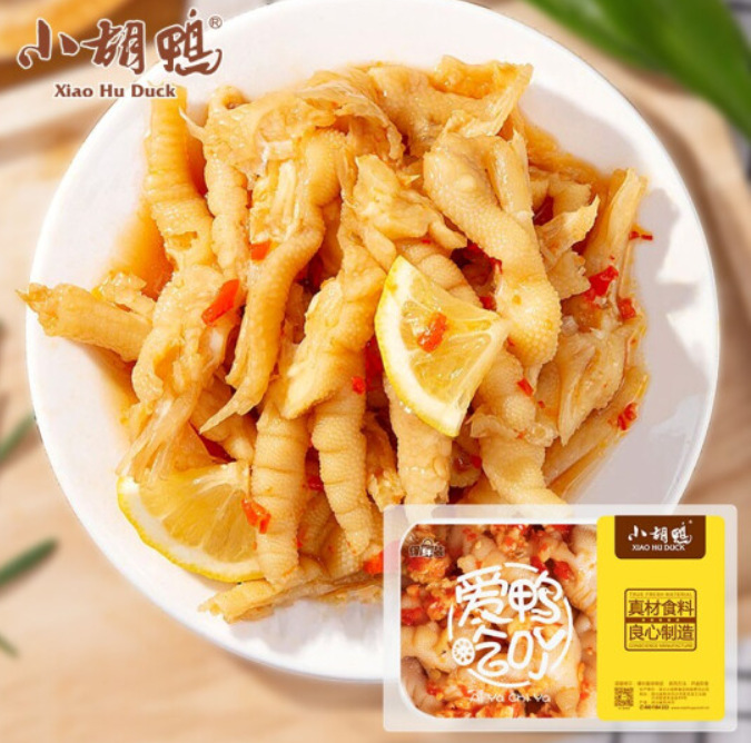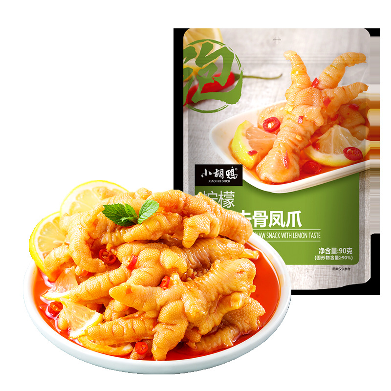 Xiaohu 오리 공장 도매 90g 소형 패키지 차가운 거품 신 레몬 뼈없는 닭 발톱 간식 뼈없는 닭 발톱스토어 가기