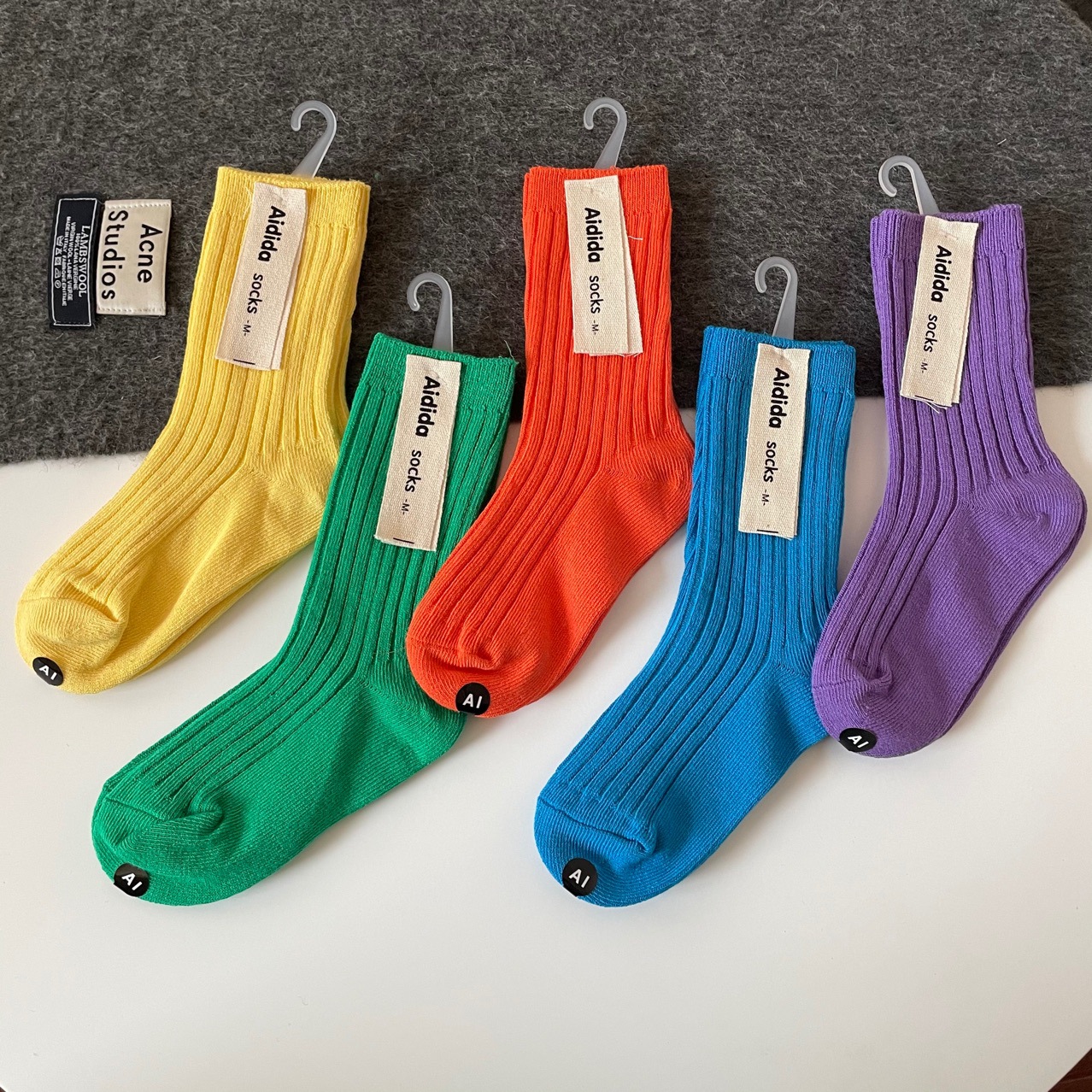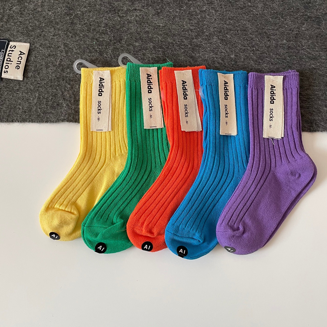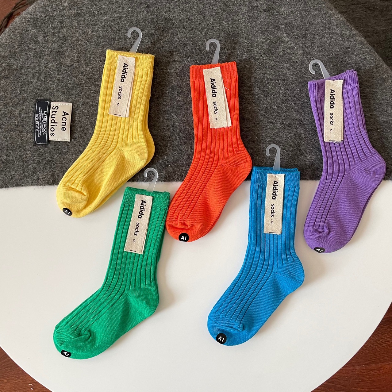 어린이 양말, 코마사 면 이중 바늘 단색 스타킹, 밝은 색상, 한국 스타일, 공장 도매, 통기성 좋고 귀여움스토어 가기