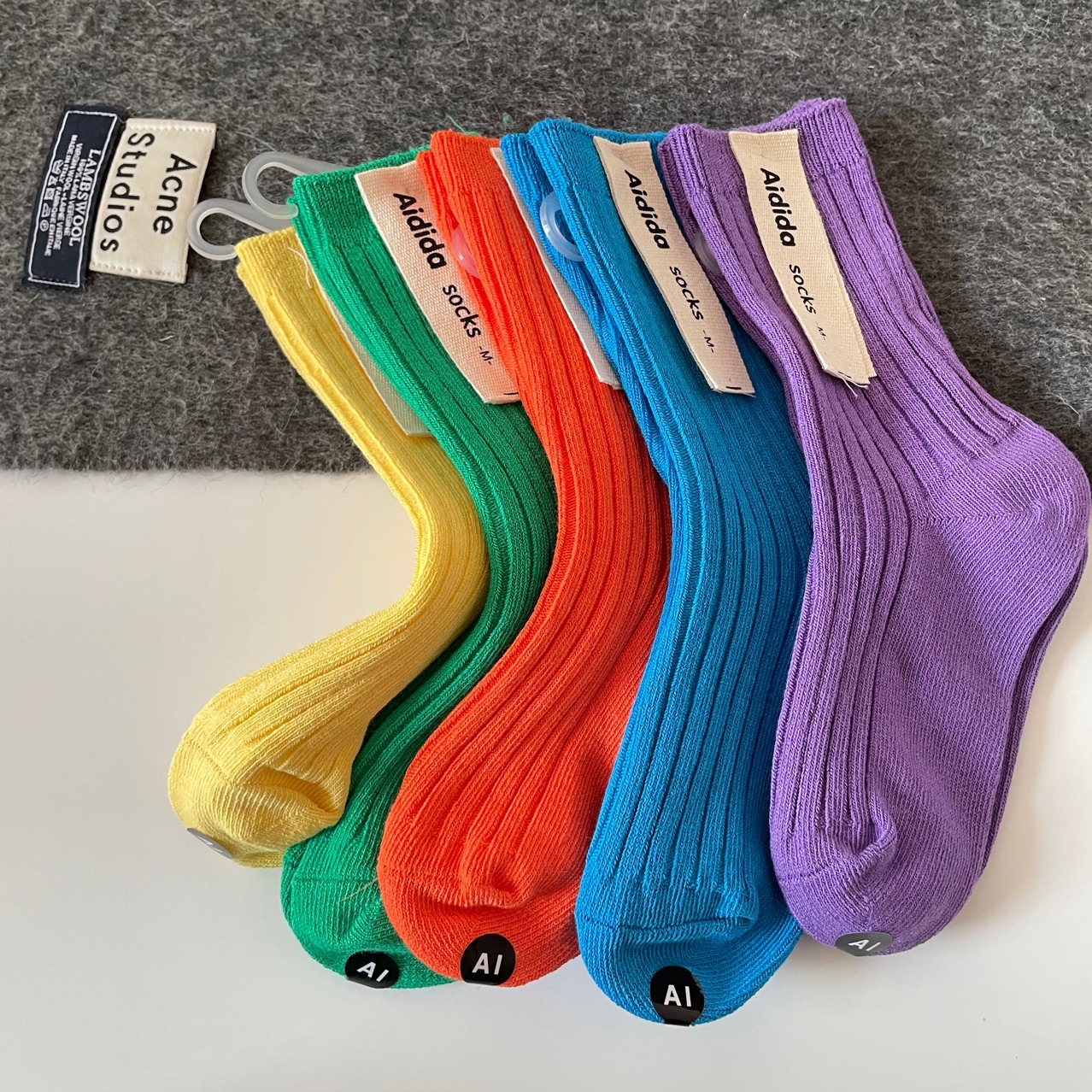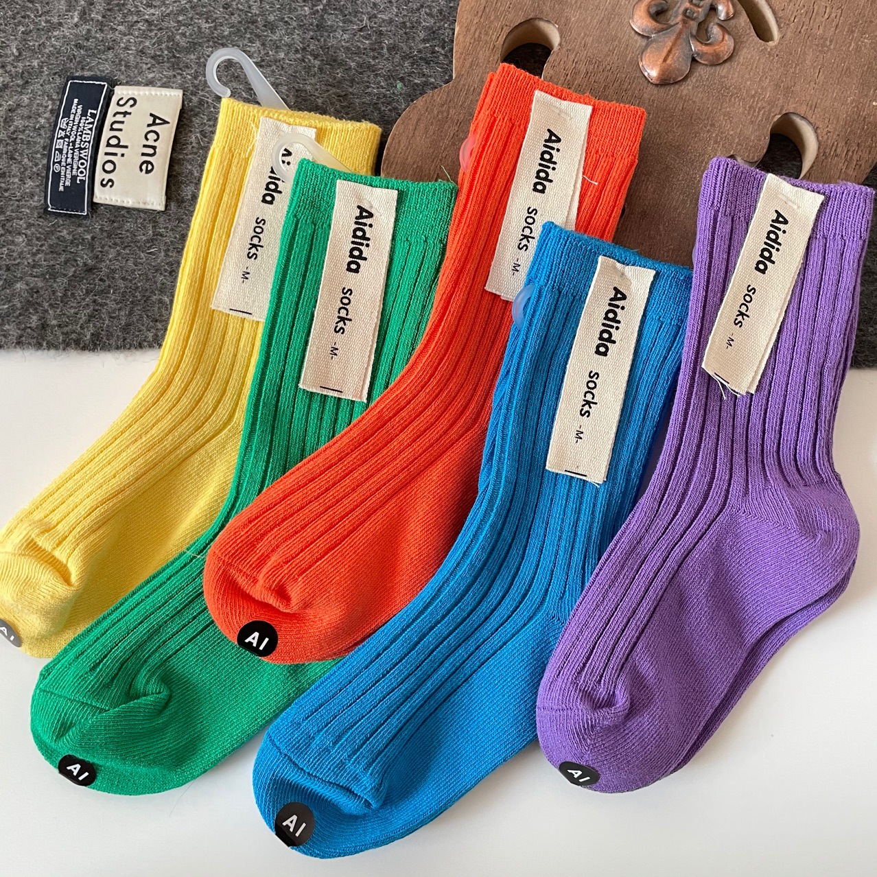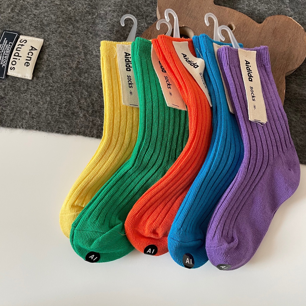 어린이 양말, 코마사 면 이중 바늘 단색 스타킹, 밝은 색상, 한국 스타일, 공장 도매, 통기성 좋고 귀여움스토어 가기