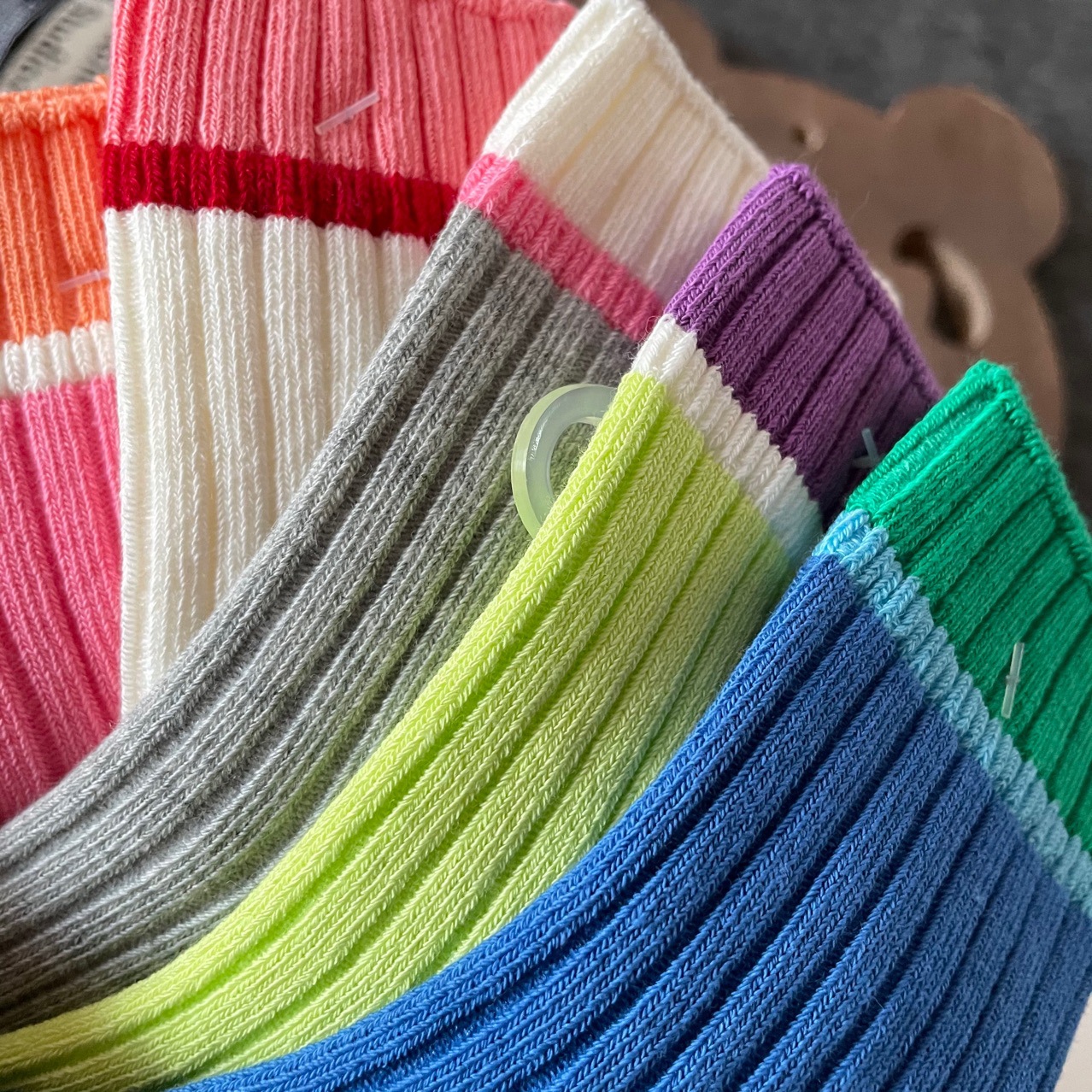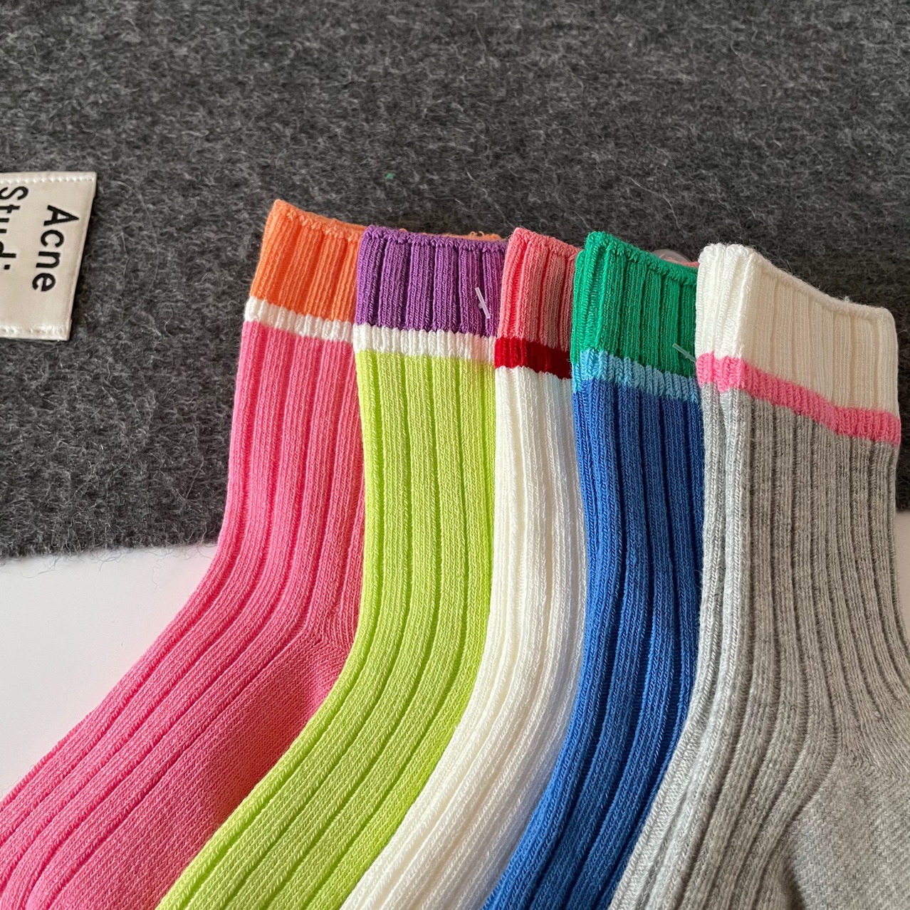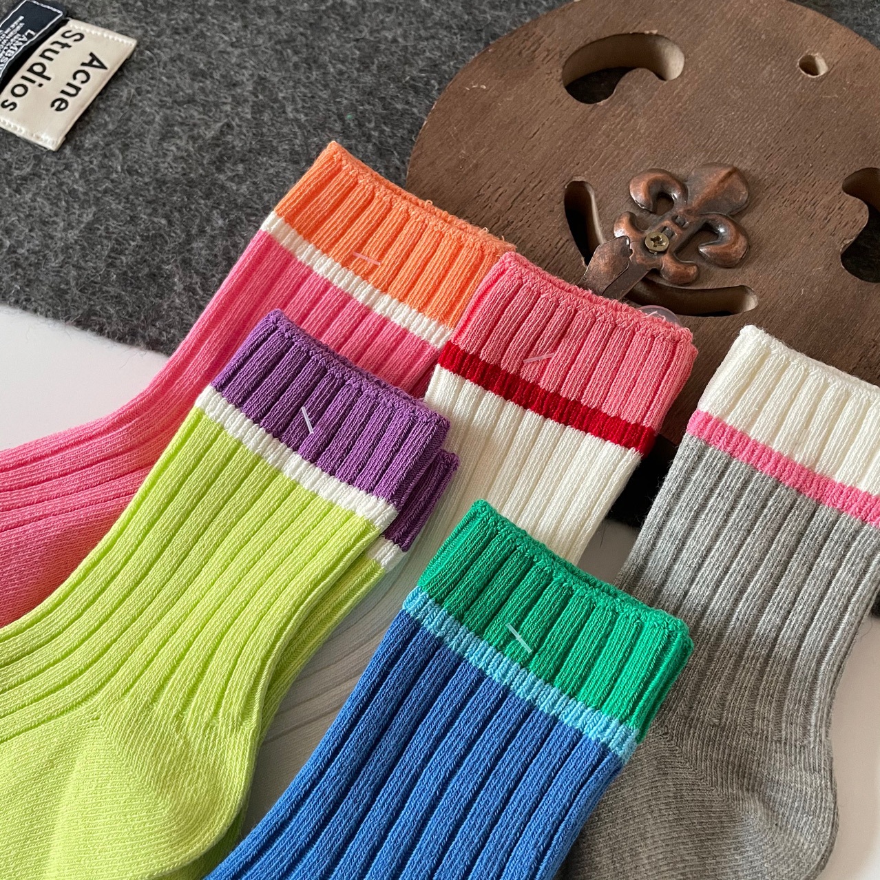 어린이 양말 면 사계절 양말 중간 길이 단색 배색 이중 바늘 제조업체 도매 부드럽고 통기성 좋은 땀 흡수 5켤레 유아용