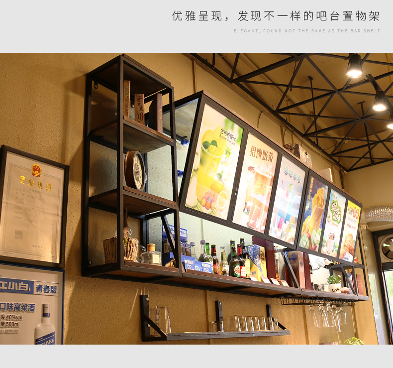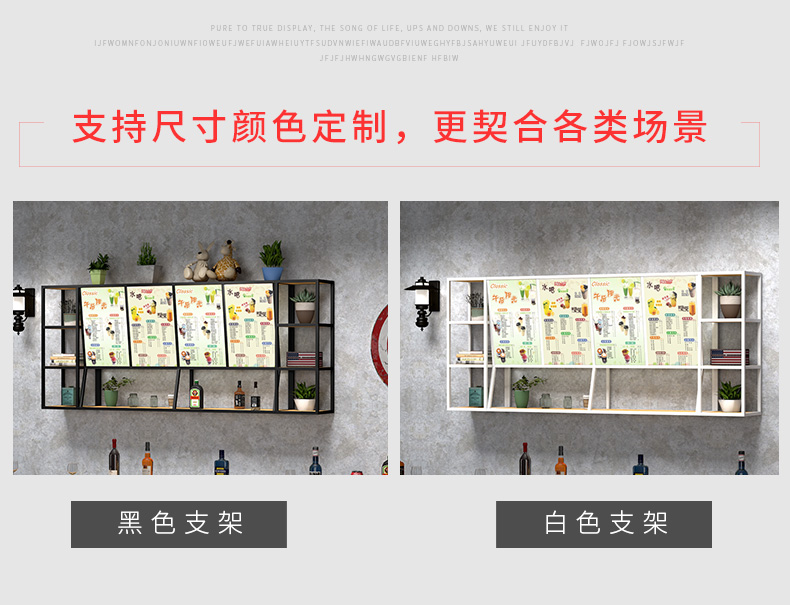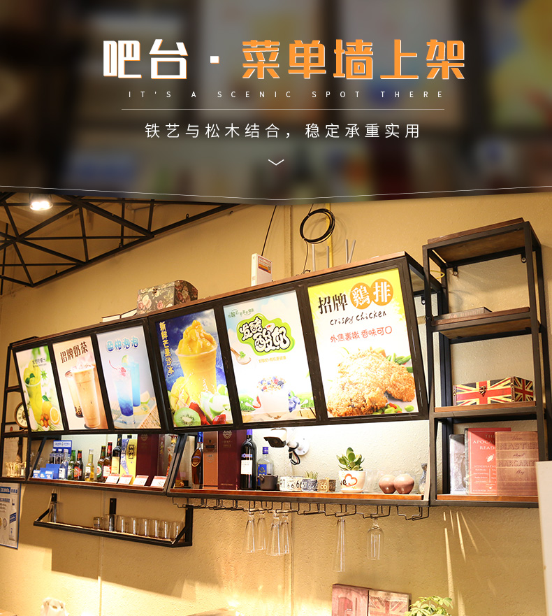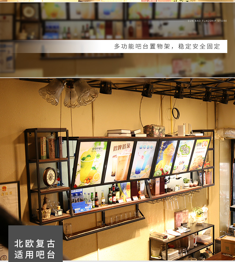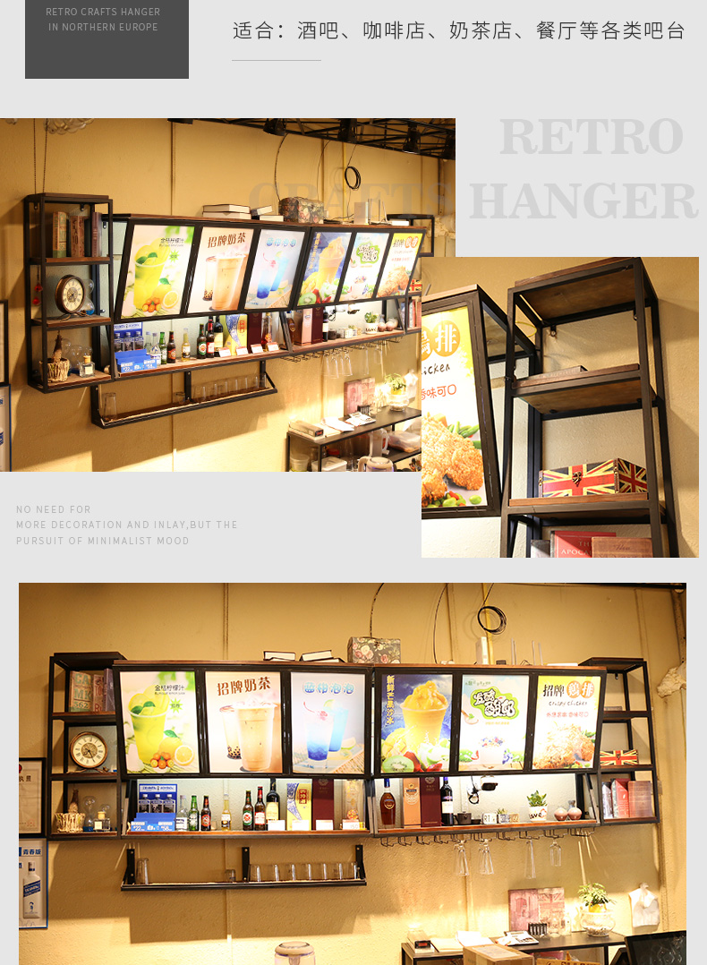 철 우유 차 상점 주문 라이트 박스 교수형 랙 바 캐비닛 레스토랑 장식 벽 교수형 메뉴 가격표 랙