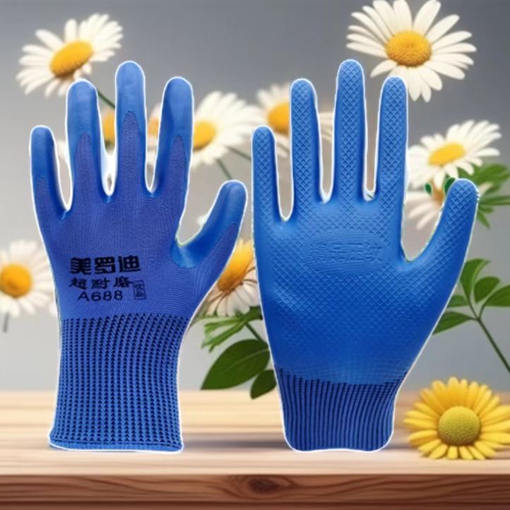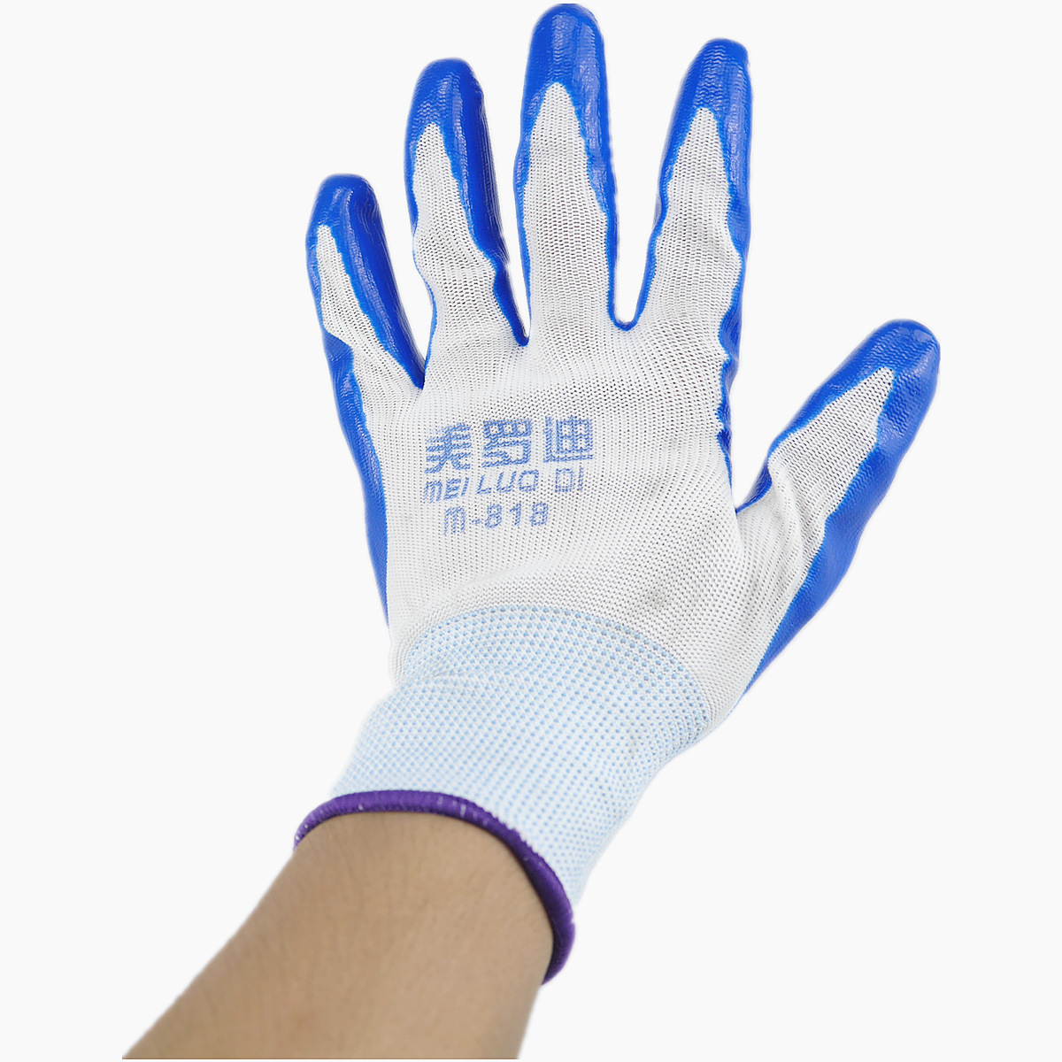 Merodi A688 Ding Qing 내마모성 미끄럼 방지 장갑 13 스티치 화이트 원사 블루 딩 칭 장갑스토어 가기