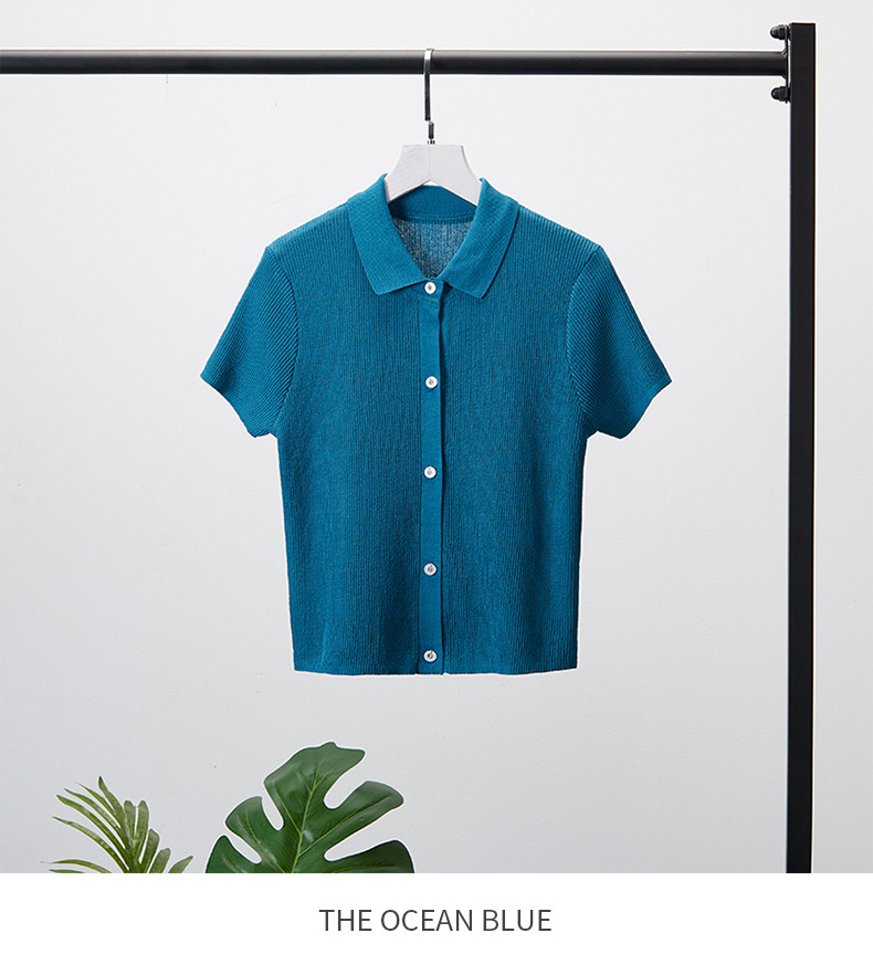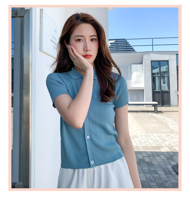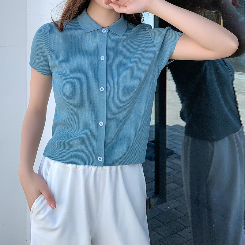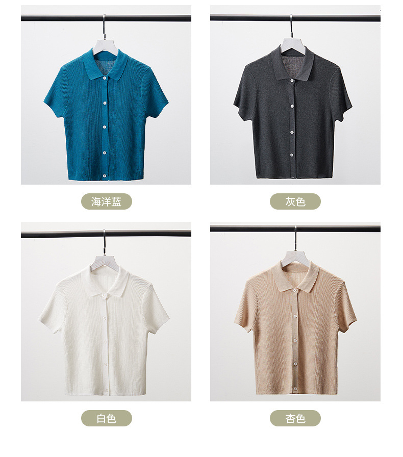 아이스 실크 니트 스웨터 여성 2024 여름 한국 스타일 새로운 짧은 소매 단색 느슨한 슬림 룩 여성 카디건 탑 코트스토어 가기