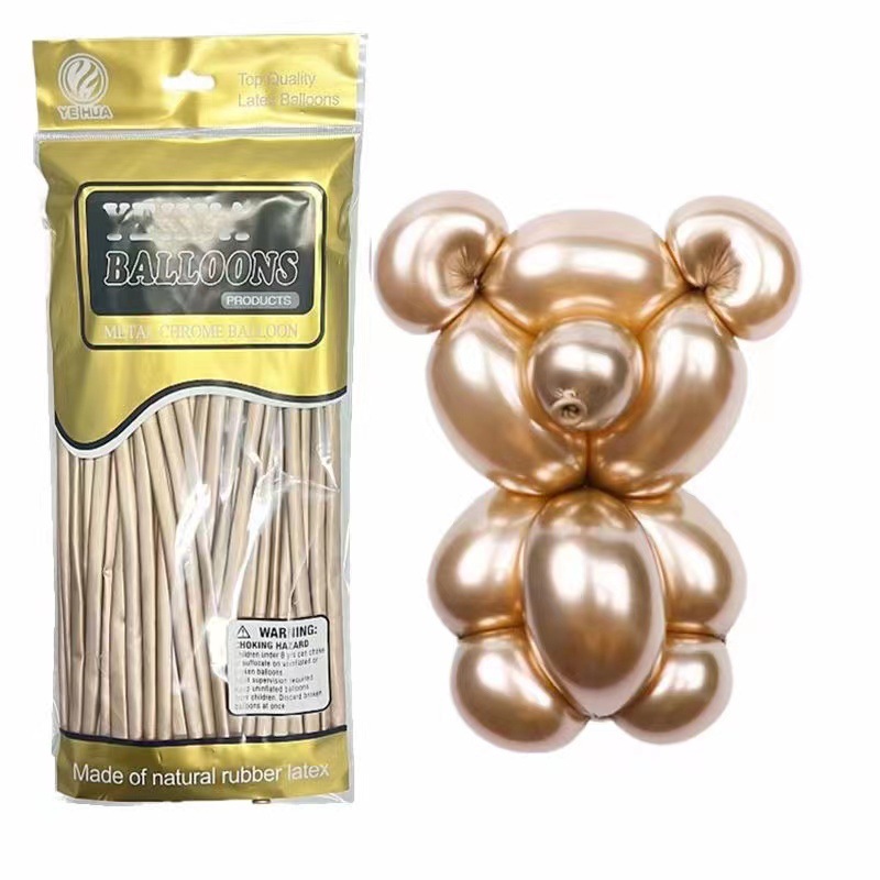매직 긴 풍선 라텍스 260 풍선 단색 동물 모양 금색과 은색 크롬 장식 1.8g 금속 풍선