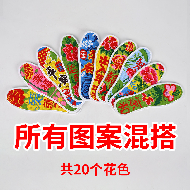 공장 도매 새로운 인쇄 크로스 스티치 insoles 자체 자수 핀홀 자수 반제품 두꺼운 단어 insoles스토어 가기
