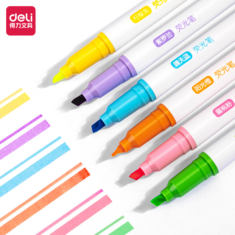 6 색 세트 델리 형광펜 라이트 컬러 학과 학생 Macron 컬러 싱글 마커 펜 6 문구