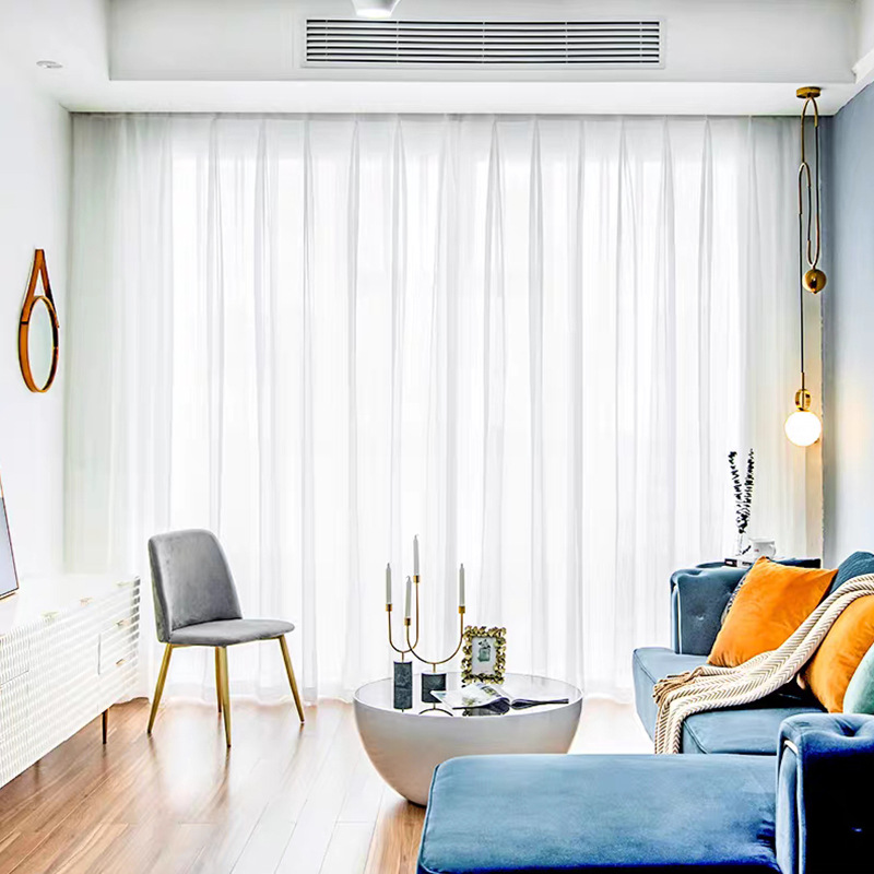 북유럽 스타일 흰색 줄무늬 창 화면 발코니 베이 창 거실 완성 된 가벼운 거즈 파티션 3.2 높은 문 크기 거즈 커튼