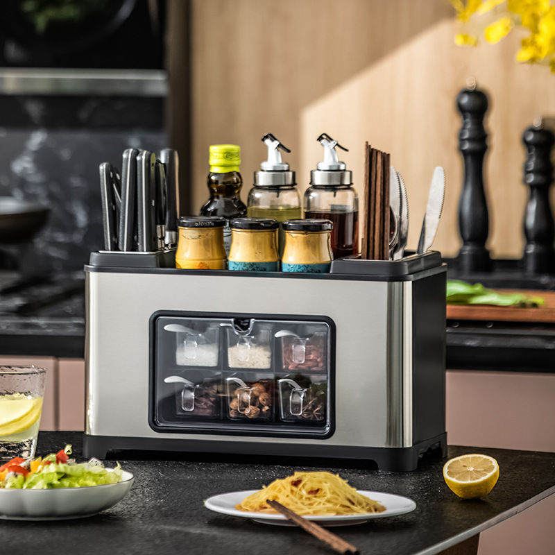 엄선된 주방 캐비닛, 가벼운 고급 조미료 병 보관함, 가정용 스테인레스 스틸 조미료 항아리 보관함, 조미료 상자스토어 가기