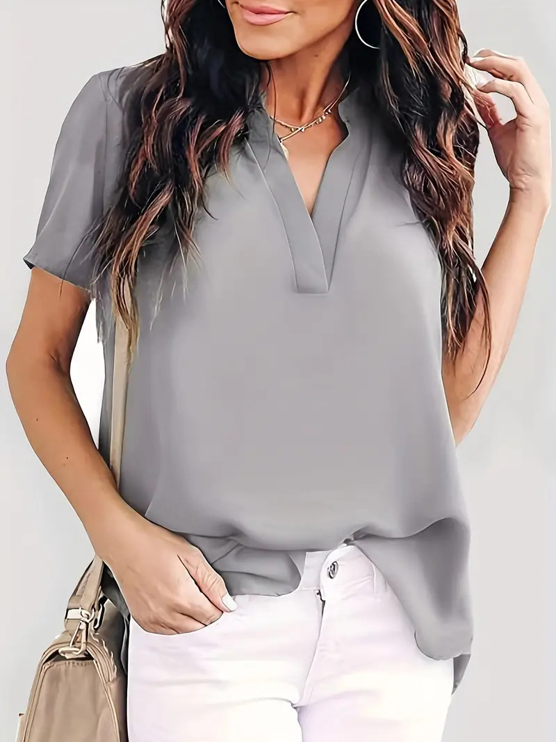 국경 간 AliExpress 전용 temu Amazon 폭발 유럽과 미국 단색 V 넥 짧은 소매 느슨한 쉬폰 셔츠 탑