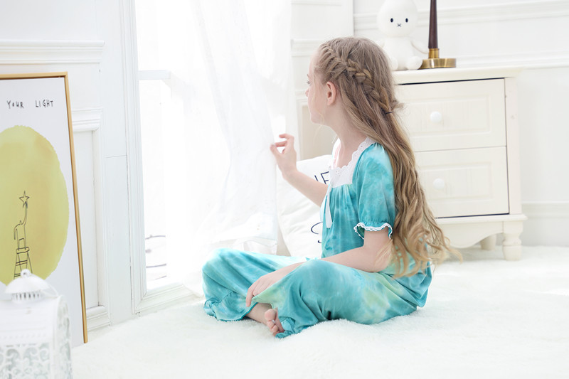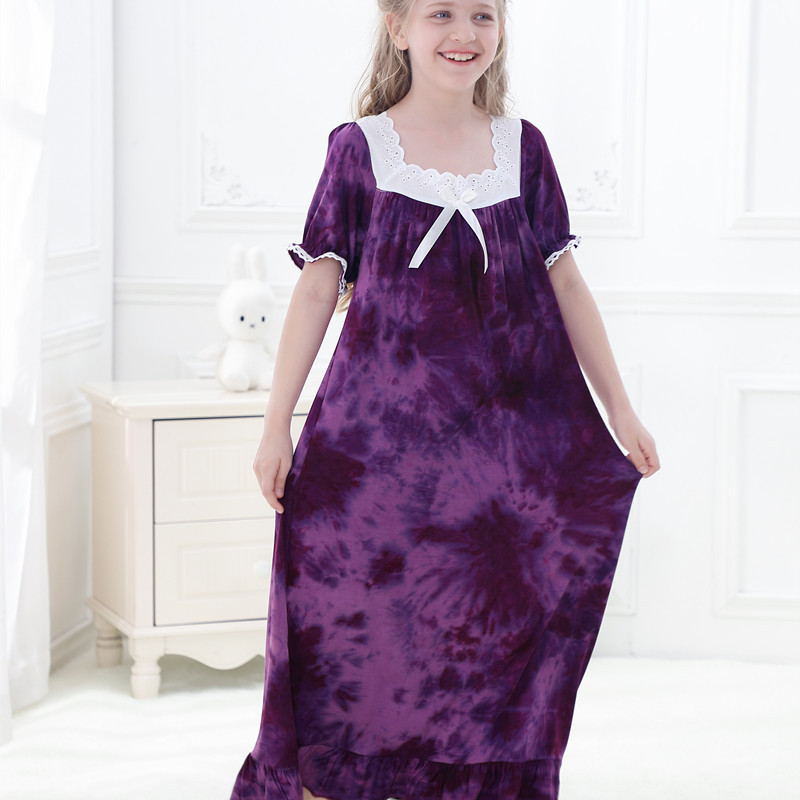 여자 여름 모달 면 타이 다이 이국적인 스타일 느슨한 유럽과 미국의 긴 공주 잠옷 가정 옷스토어 가기