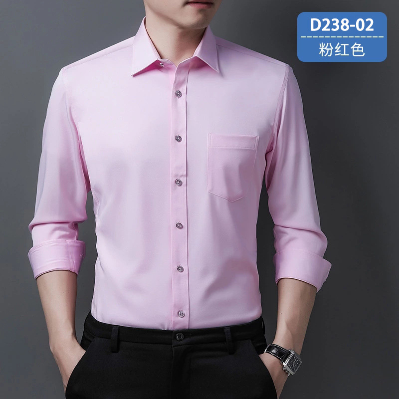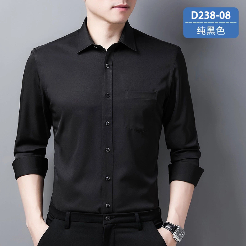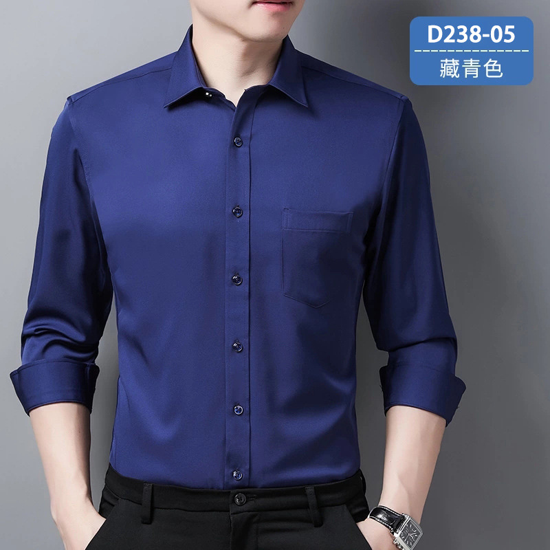 봄과 여름 새로운 아이스 실크 남성용 긴팔 셔츠 남성용 비즈니스 캐주얼 스트레치 다리미 비즈니스웨어 툴링 남성용 자수 로고