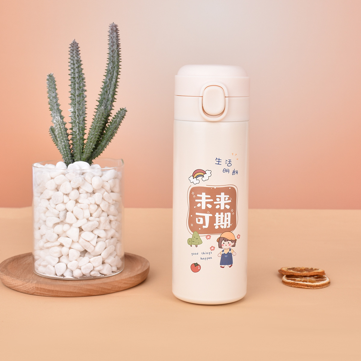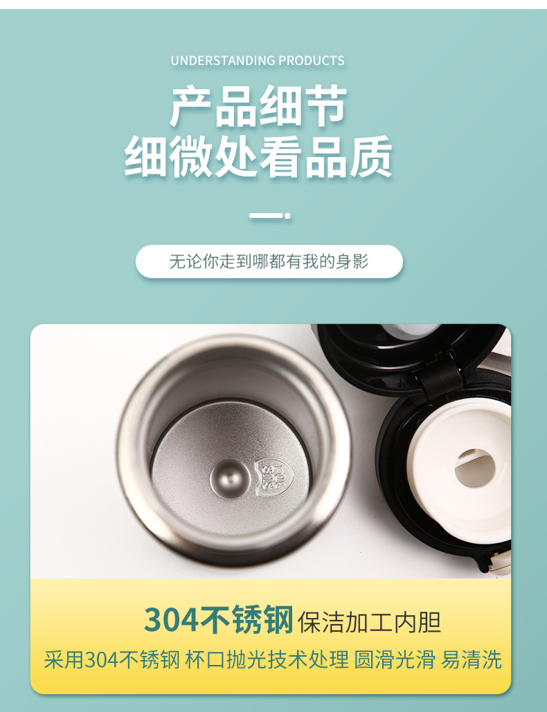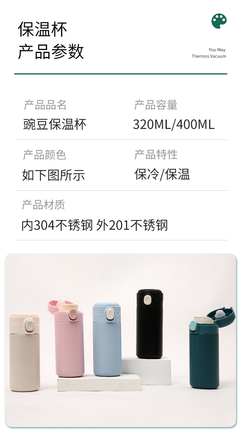 New 304 스테인레스 심플 바운스 뚜껑 완두콩 컵 학생 소형 신선한 미니 휴대용 보온병 컵 도매스토어 가기