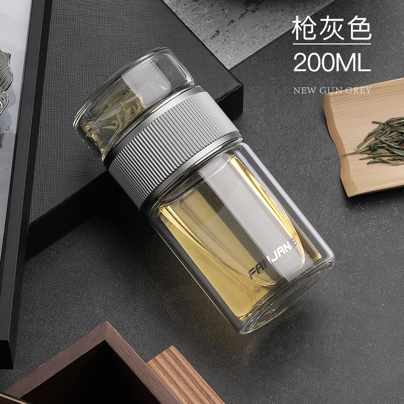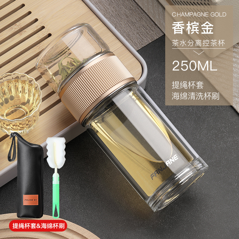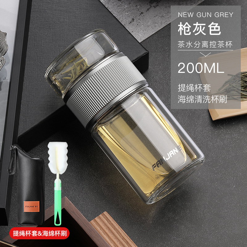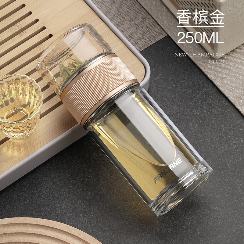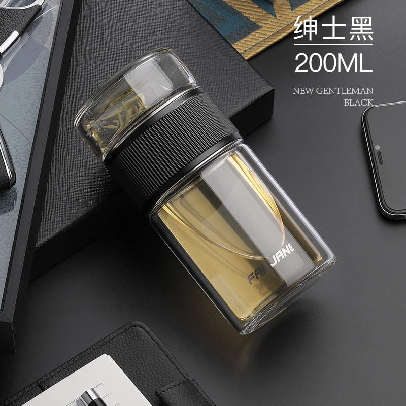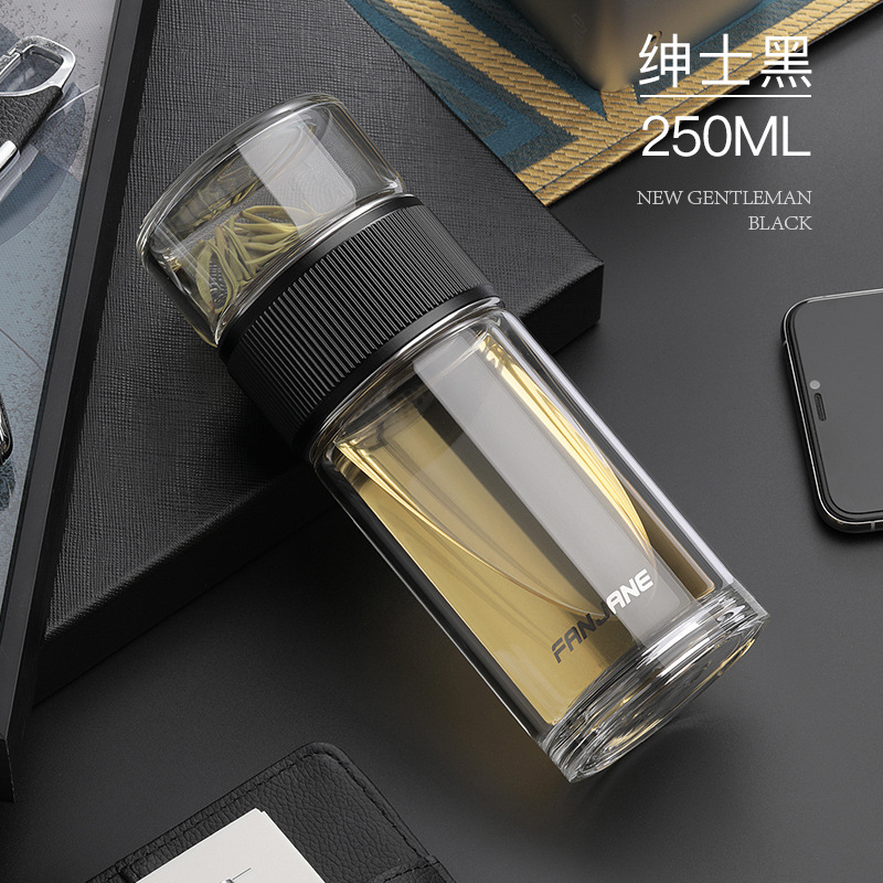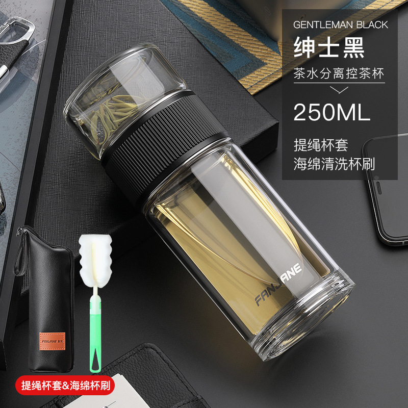 남자와 여자를 위한 간단한 차 분리 컵 유리 내열 버블 컵 투명 컵 휴대용 더블 레이어 선물 주는 물 컵