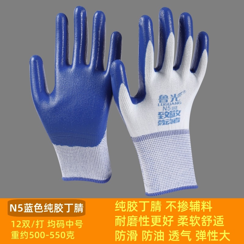 노동 보호 장갑 Luguang N5 니트릴 교수형 고무 장갑 니트릴 담근 내마모성 작업 보호 고무 장갑