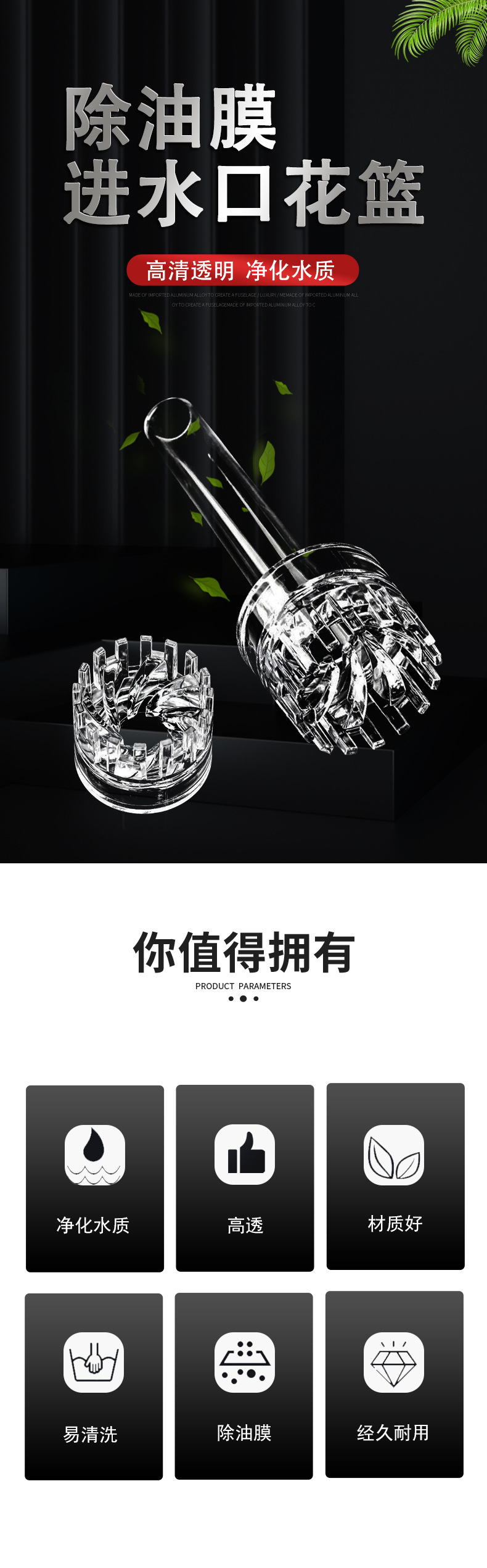 오일 제거 필름 플로트 유리 소재 꽃 바구니 조절 밸브 스테인레스 스틸 물 입구 및 출구 피팅 아크릴 오일 필름