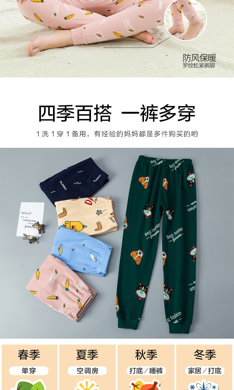 소년과 소녀의 가을 바지 코튼 싱글 파자마 바지 아기면과 울 바지 큰 소녀의 속옷 레깅스 소년의 실 바지