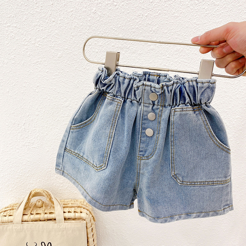 여아 웨스턴 스타일 조커 3 버클 사다리꼴 포켓 워싱 데님 반바지 유럽과 미국 스타일 봄과 여름 새로운 36001