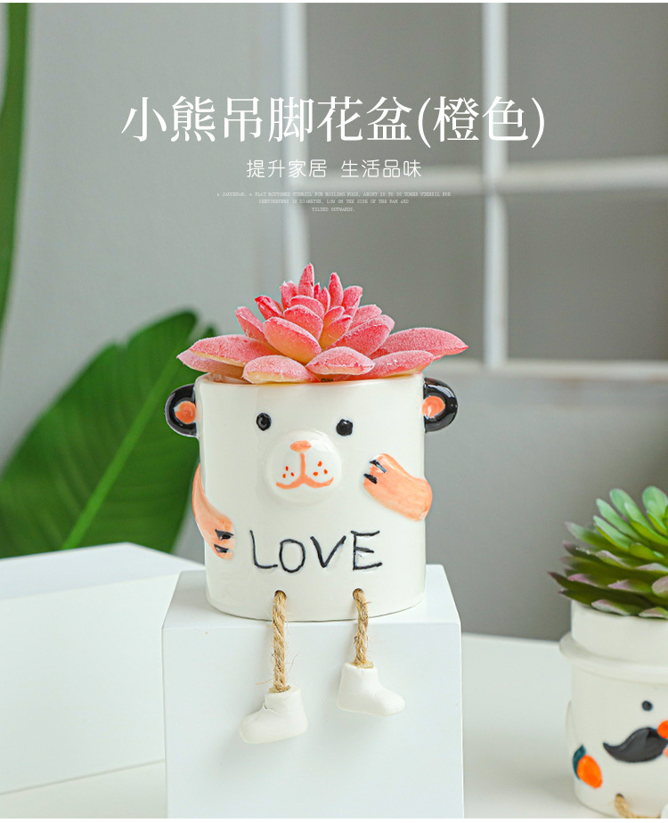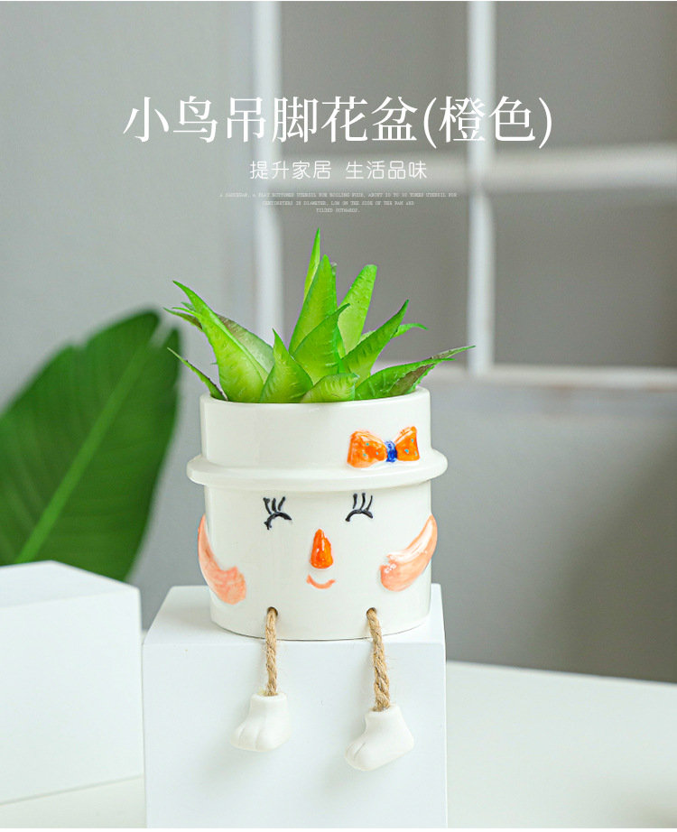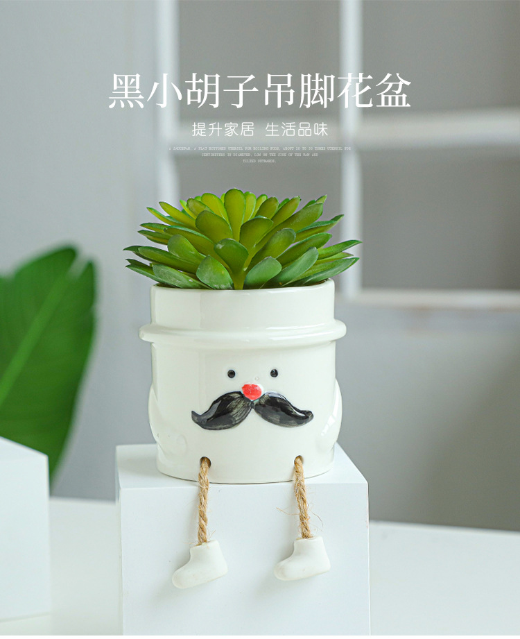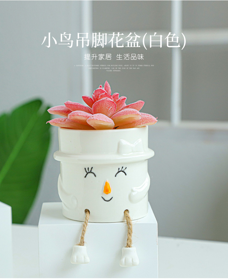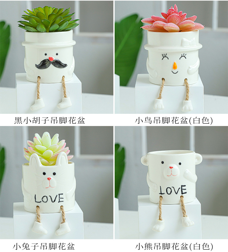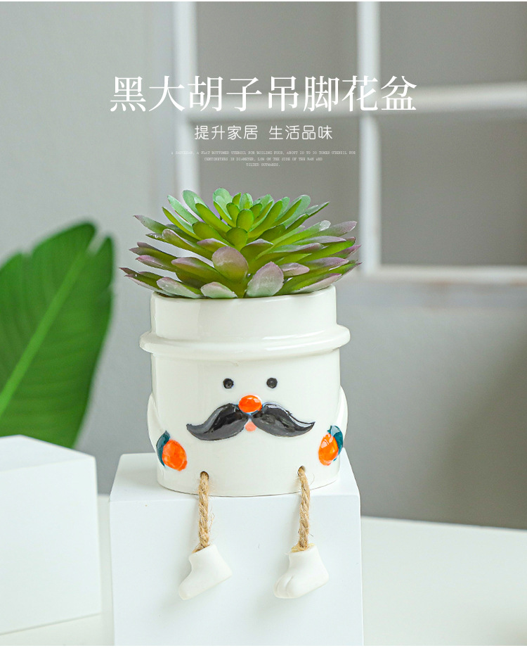 북유럽 인공 다육 화분 창조적 인 교수형 발 인형 세라믹 화분 선인장 다육 질 실내 거실 장식