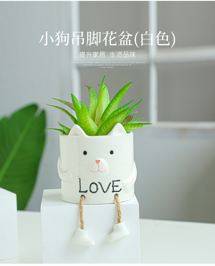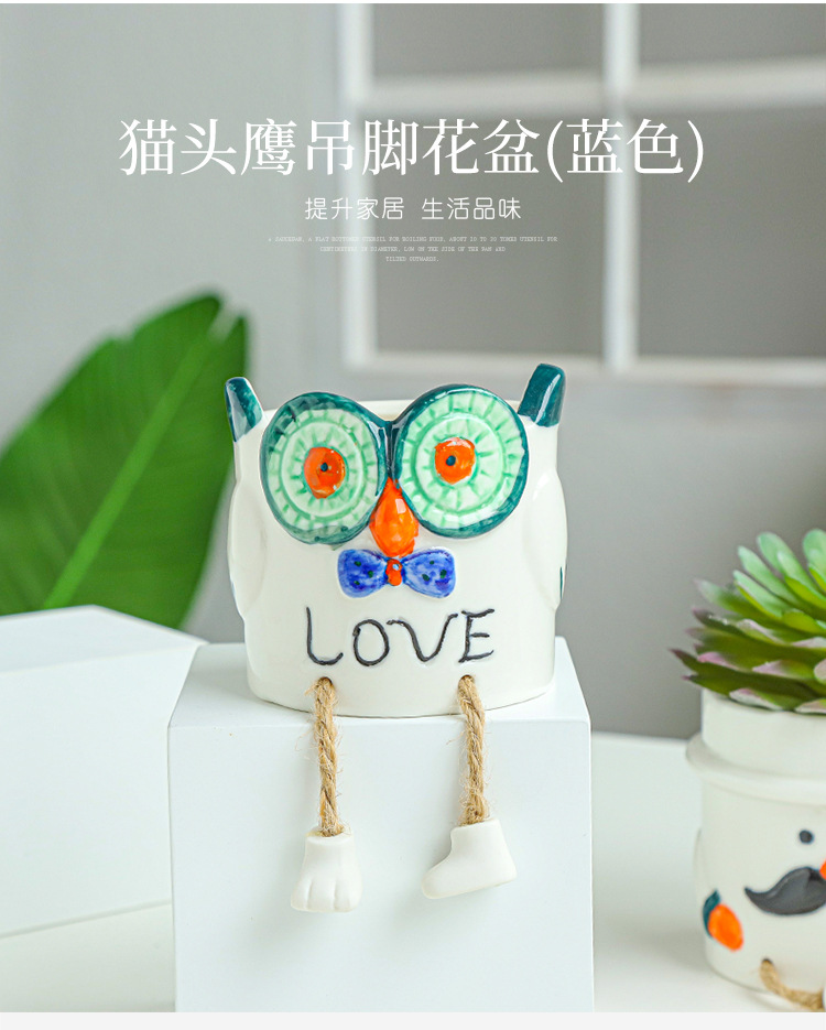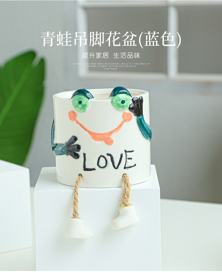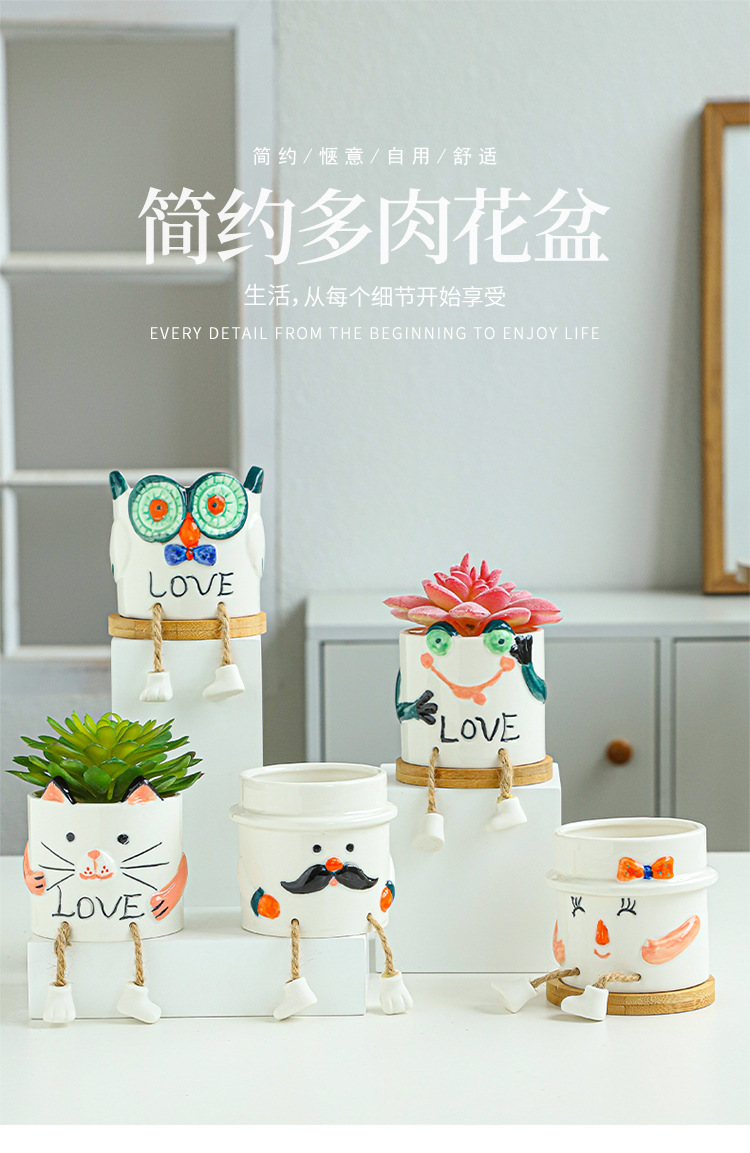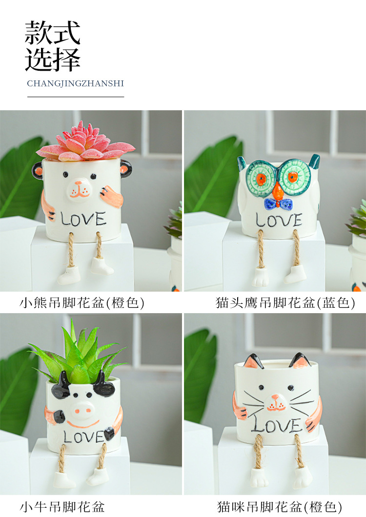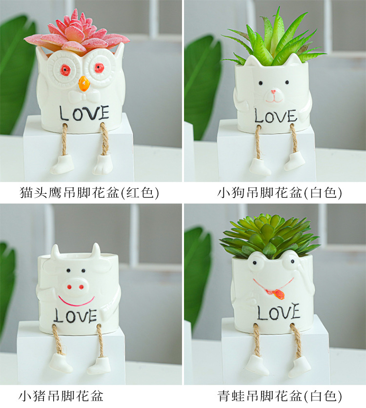북유럽 인공 다육 화분 창조적 인 교수형 발 인형 세라믹 화분 선인장 다육 질 실내 거실 장식