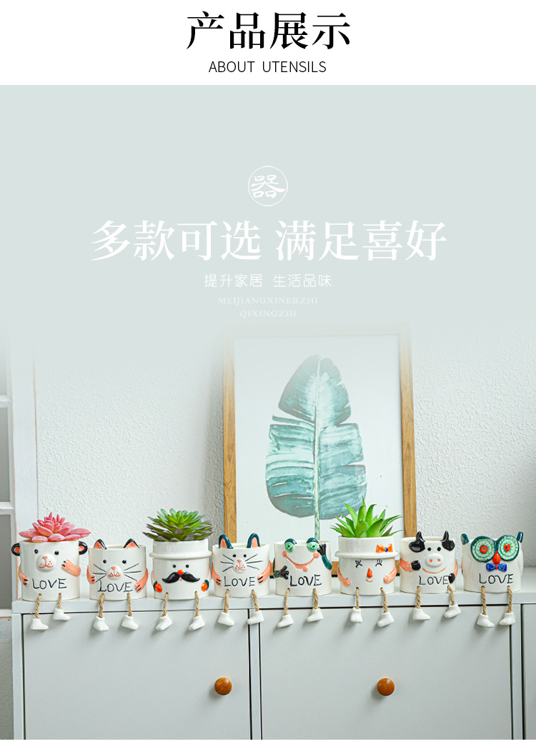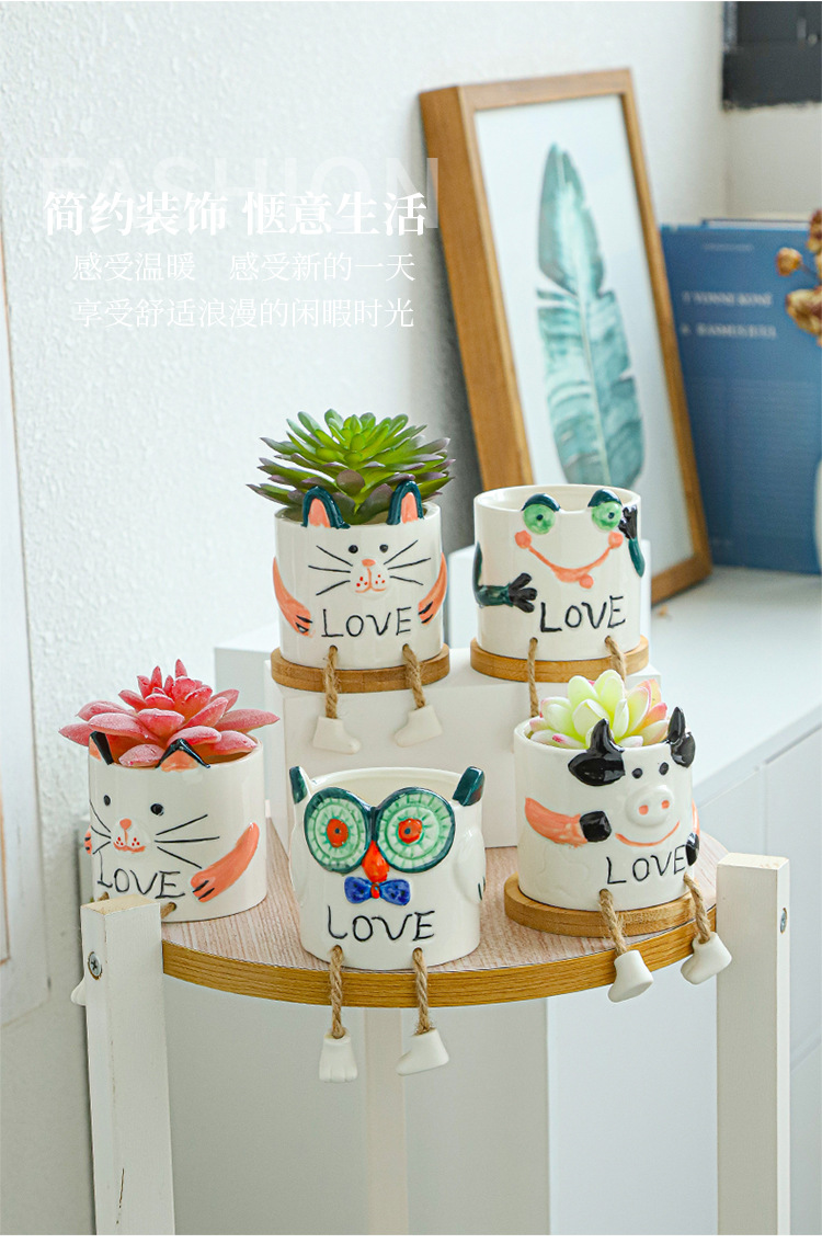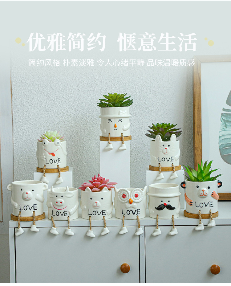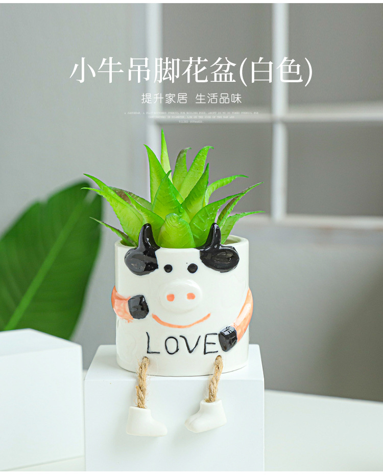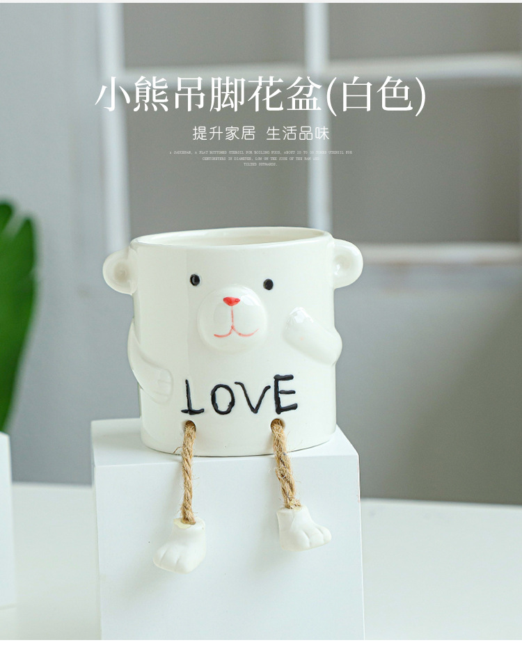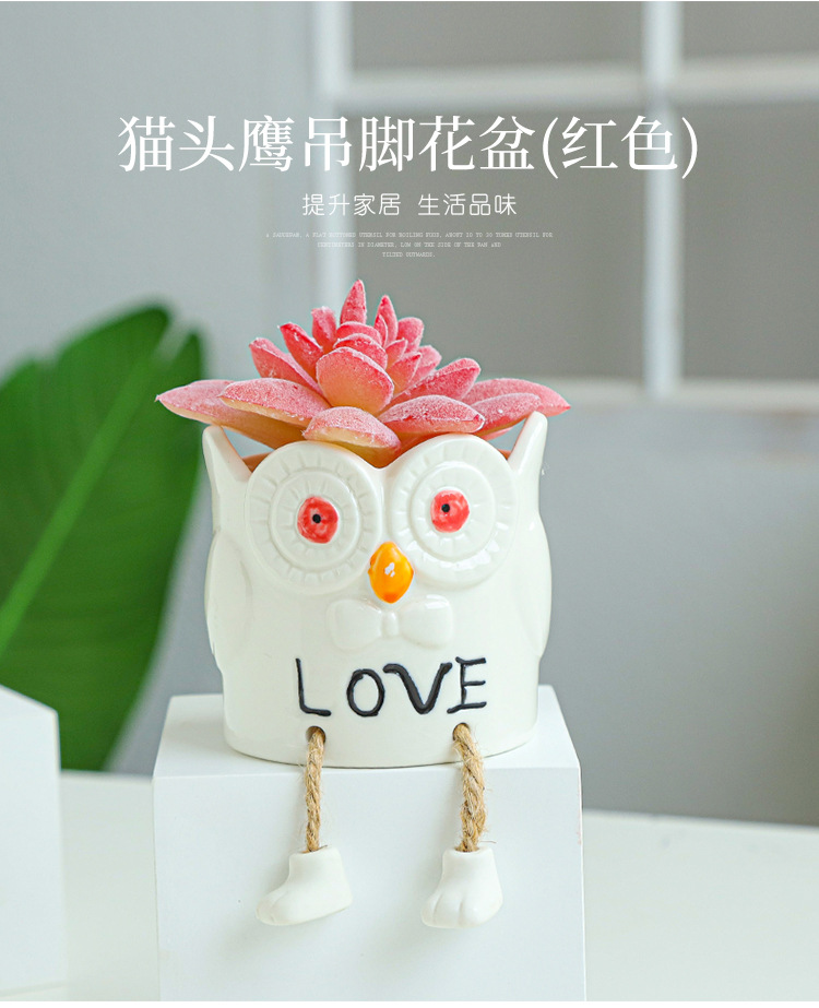 북유럽 인공 다육 화분 창조적 인 교수형 발 인형 세라믹 화분 선인장 다육 질 실내 거실 장식