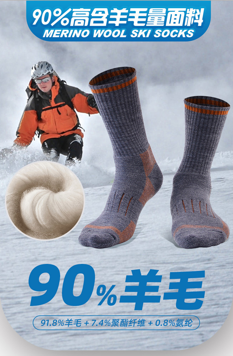 RB 메리노 울 하이킹 양말 호주 양모 원사 전체 울 90% 하이킹 양말 크로스 보드 따뜻한 스키 양말 도매