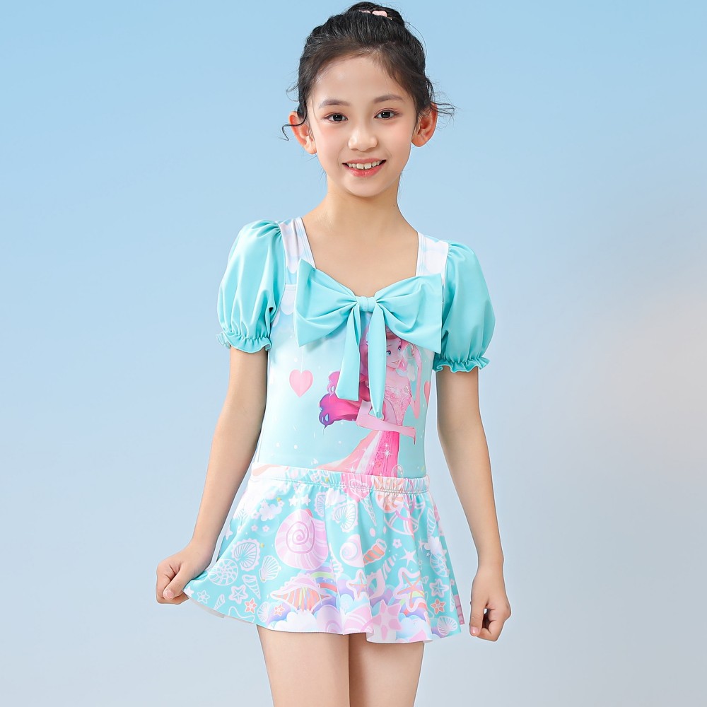 새로운 어린이 수영복 소녀 원피스 긴팔 스플릿 스커트 태양 보호 조수 학생 소녀 수영복