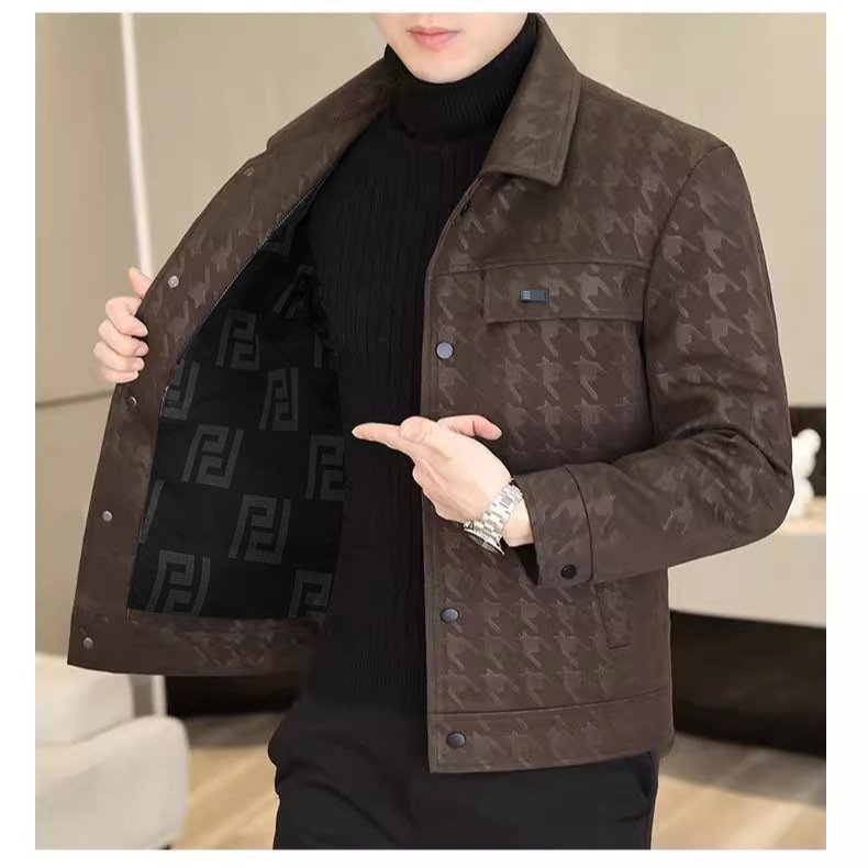 전국 최저가 봄 가을 중년층 청년층 물떼새 격자 무늬 트렌디 패션 숏 라펠 캐주얼 재킷 가죽 자켓 남성용