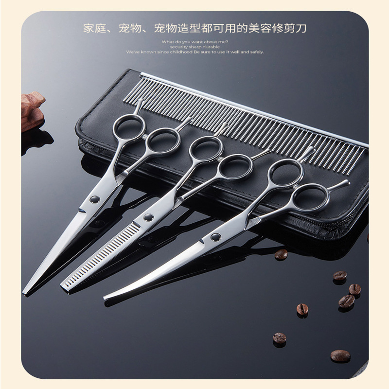 애완 동물 가위 미용 도구 세트 장식 헤어 커터 7 인치 스트레이트 컷 곡선 컷 개 테디 VIP 헤어 커팅 도구