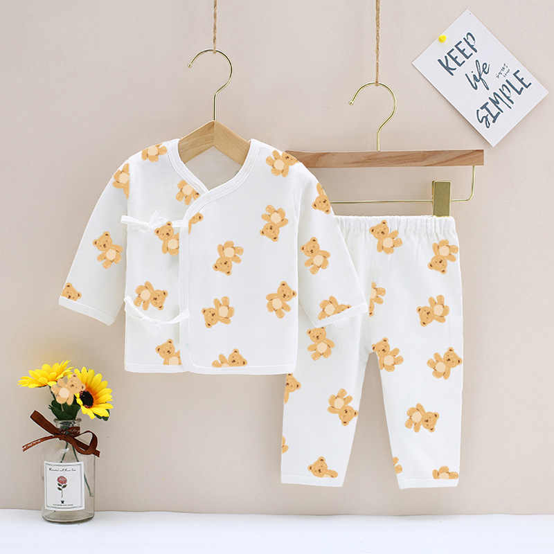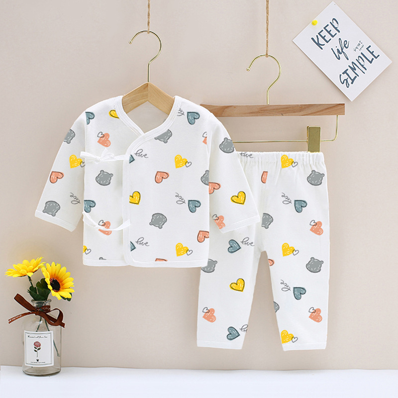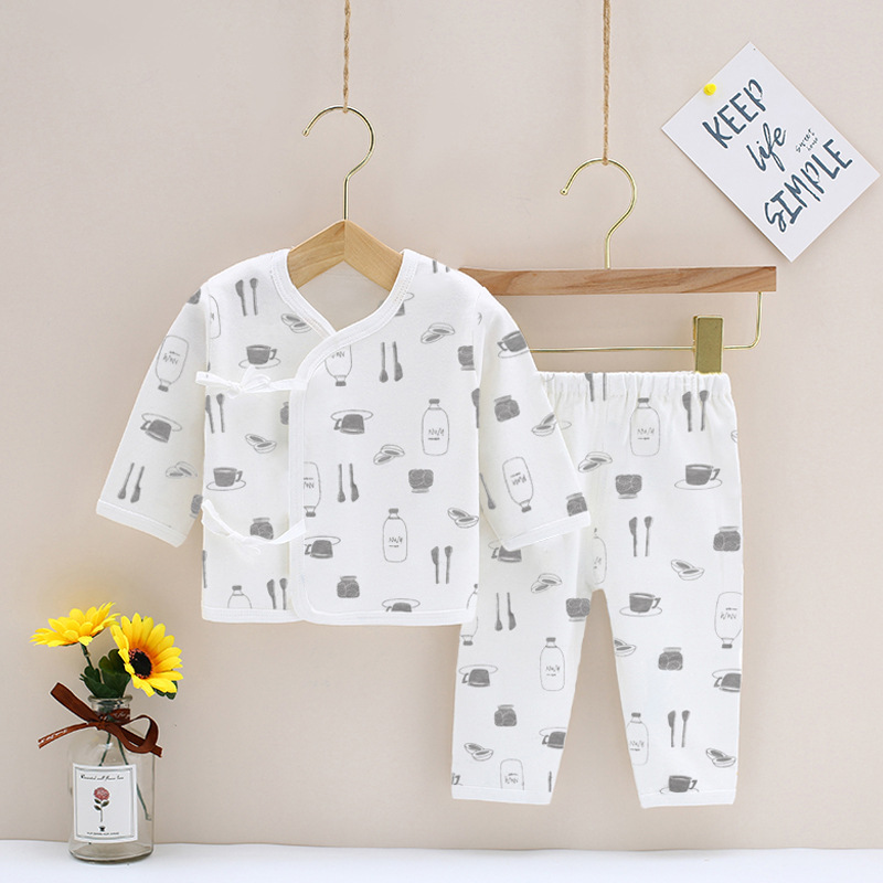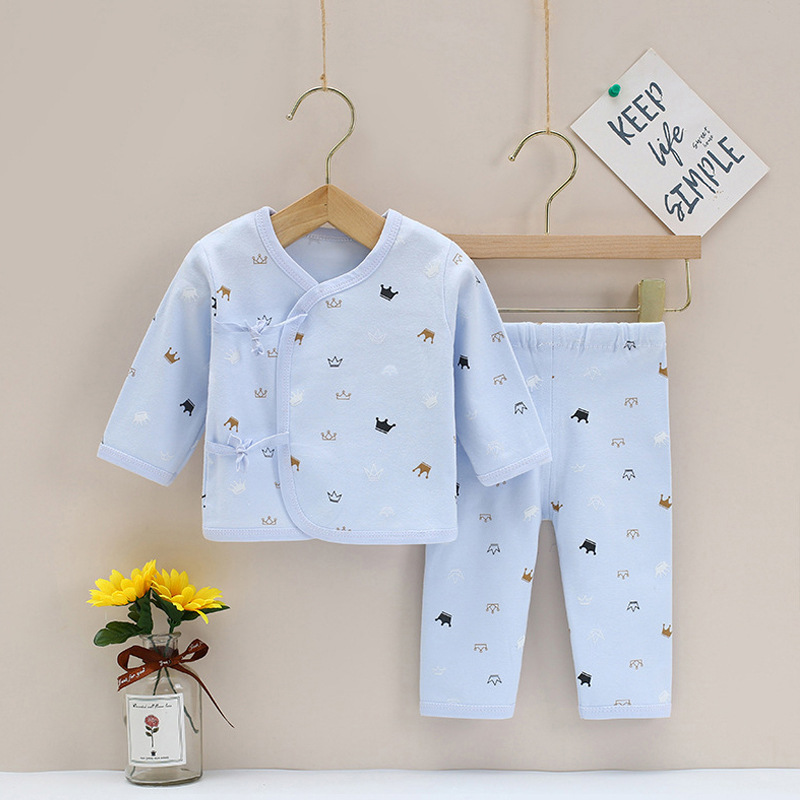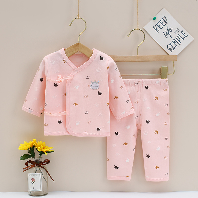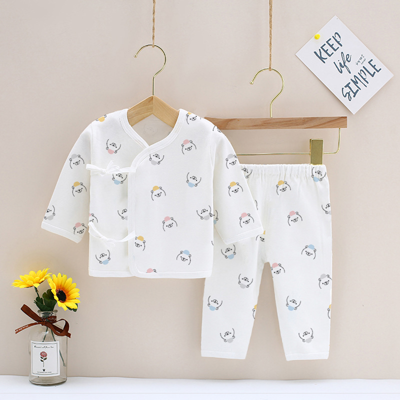 아기 옷 신생아 면 두 조각 세트 아기 봄 가을과 겨울 긴 소매 인쇄 레이스 업 따뜻한 잠옷 세트