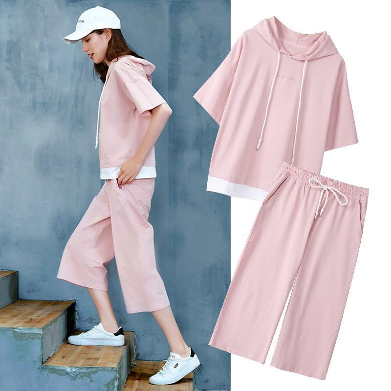 여성을위한 유럽 캐주얼 운동복 정장 2025 봄, 여름 학생 새로운 패션 투피스 세트 느슨한 대형 유행