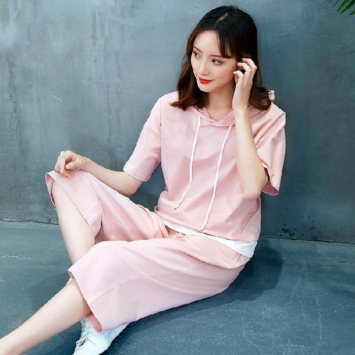 여성을위한 유럽 캐주얼 운동복 정장 2025 봄, 여름 학생 새로운 패션 투피스 세트 느슨한 대형 유행스토어 가기