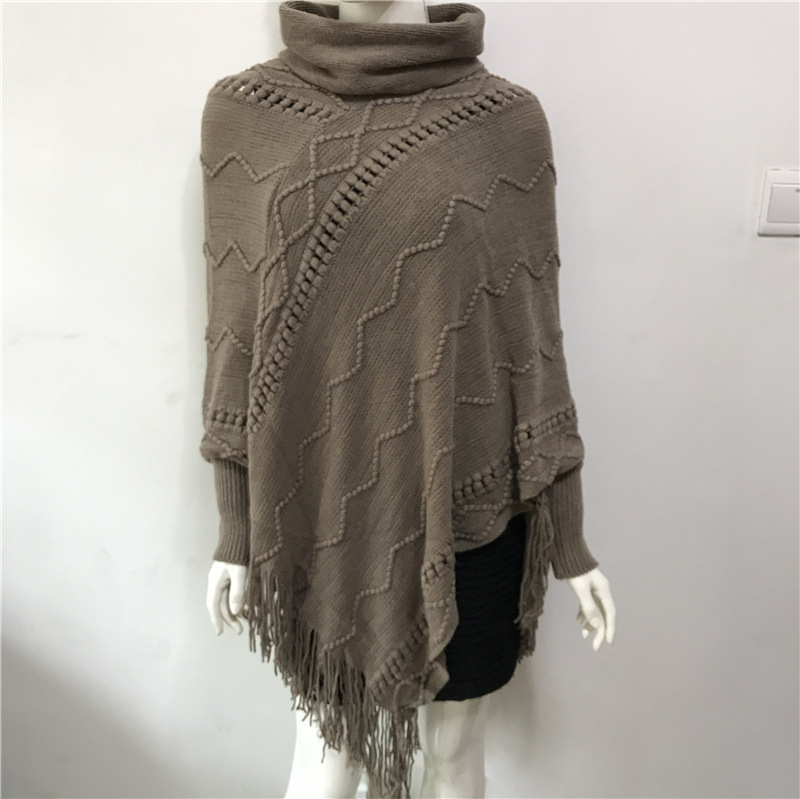 가을과 겨울 새로운 캐시미어 술 스웨터 공장 직공급 대외 무역 재고 하이 칼라 따뜻한 소매 풀오버 케이프