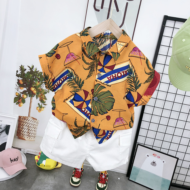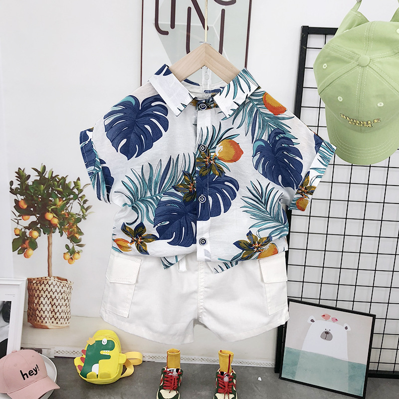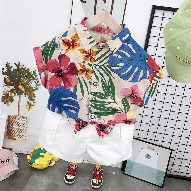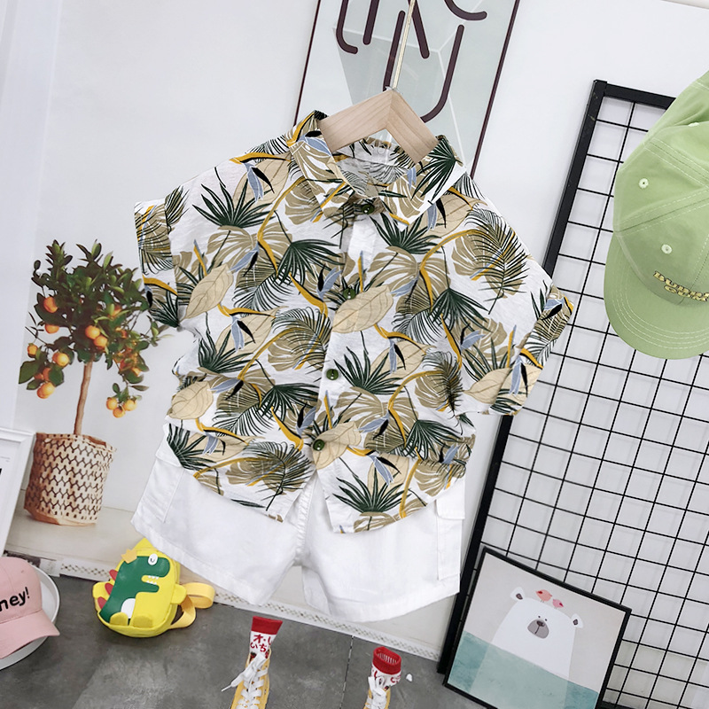 남아 반팔 꽃 셔츠 어린이 여름 비치 셔츠 캐주얼 반바지 세트 어린이 휴가 재킷 세련된스토어 가기